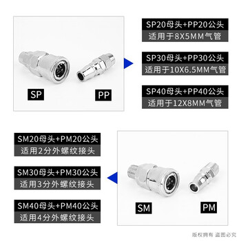 山耐斯(TWSNS)气动快插接头空压机气管C式自锁快速接头 普SM40+PM40外螺纹4分