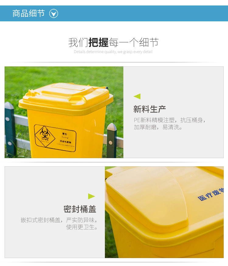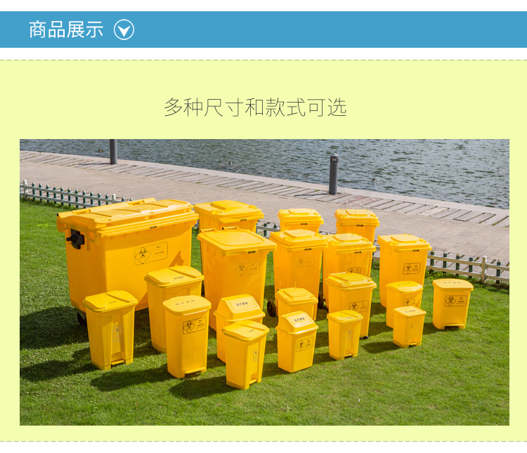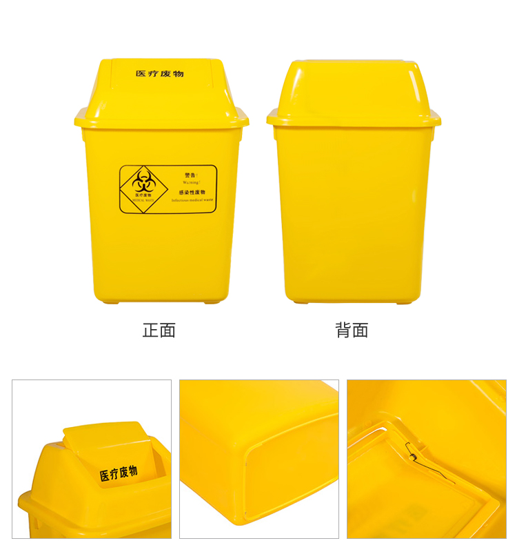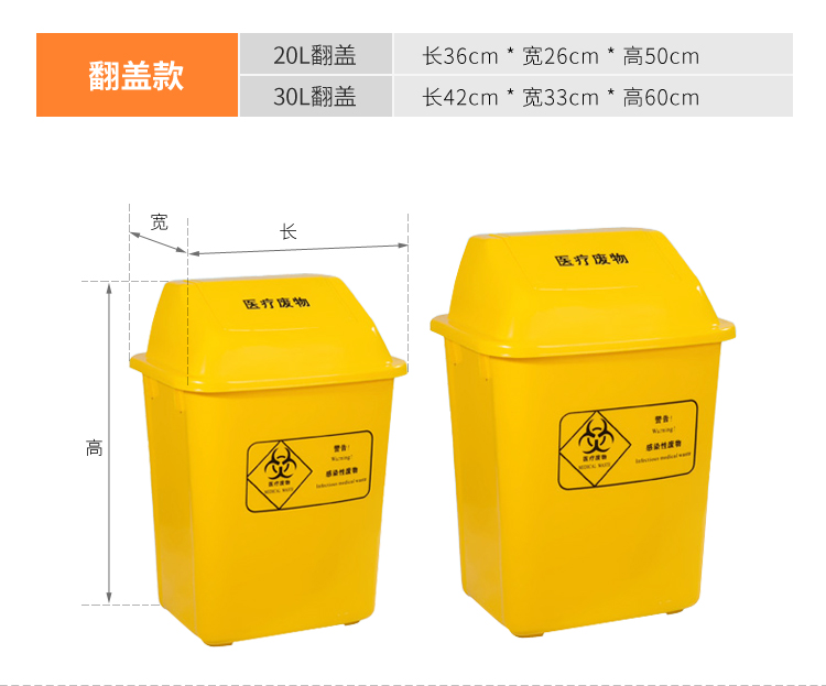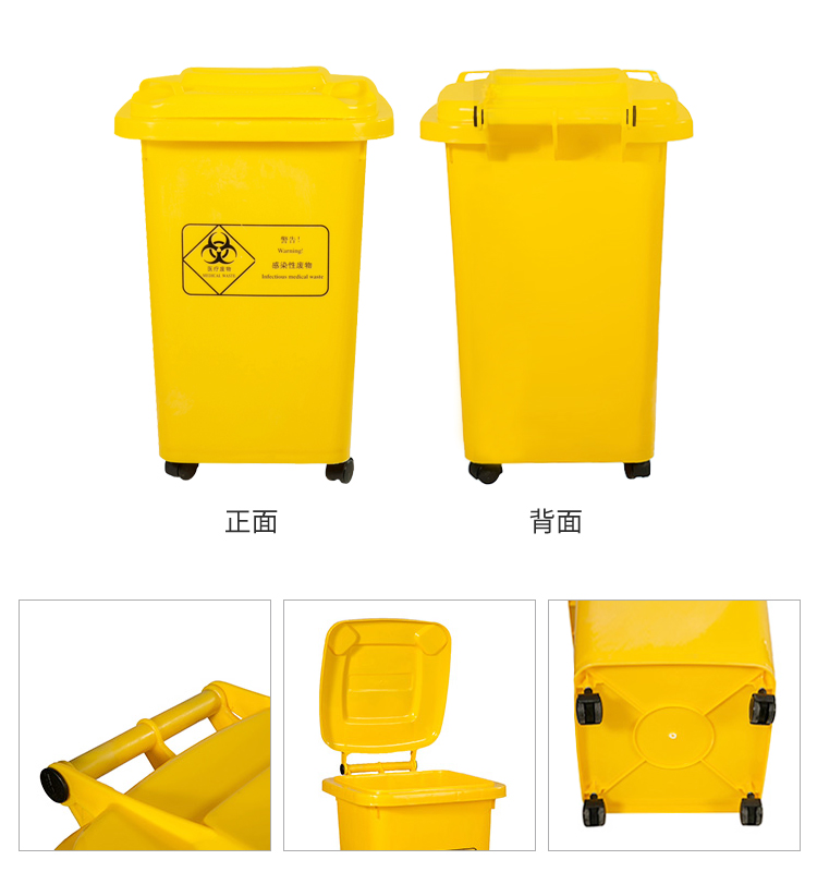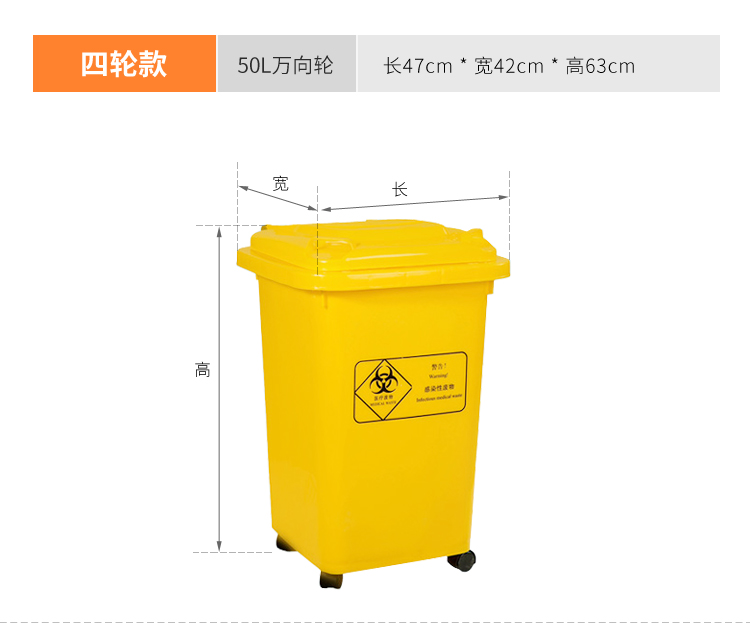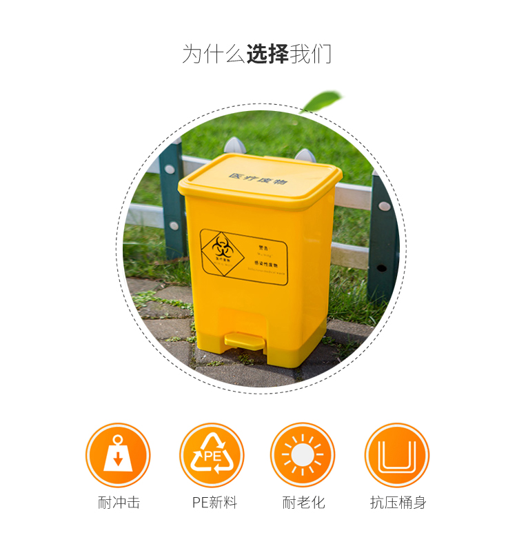 货号: XDL-50D-3 商品名称: 50L脚踏桶黄色医用垃圾桶 尺寸: 30*39*66CM 重量: 2.5KG 材质:PE