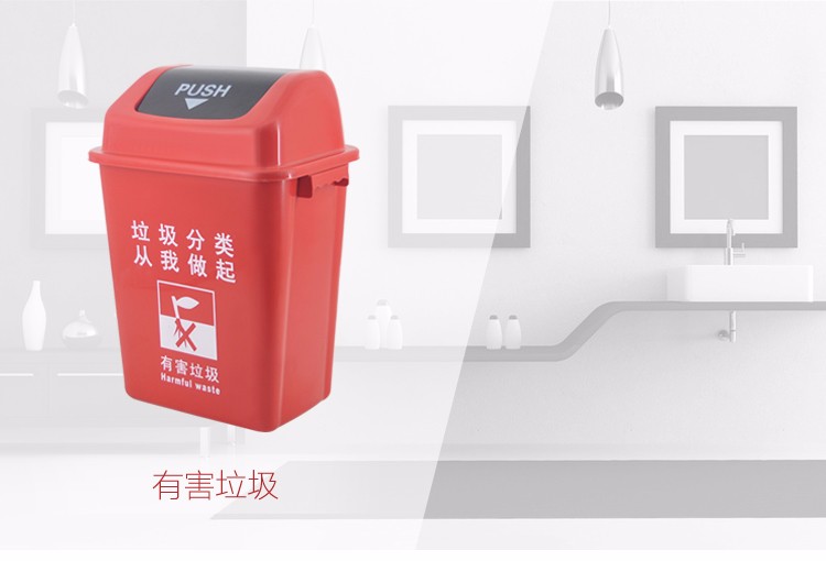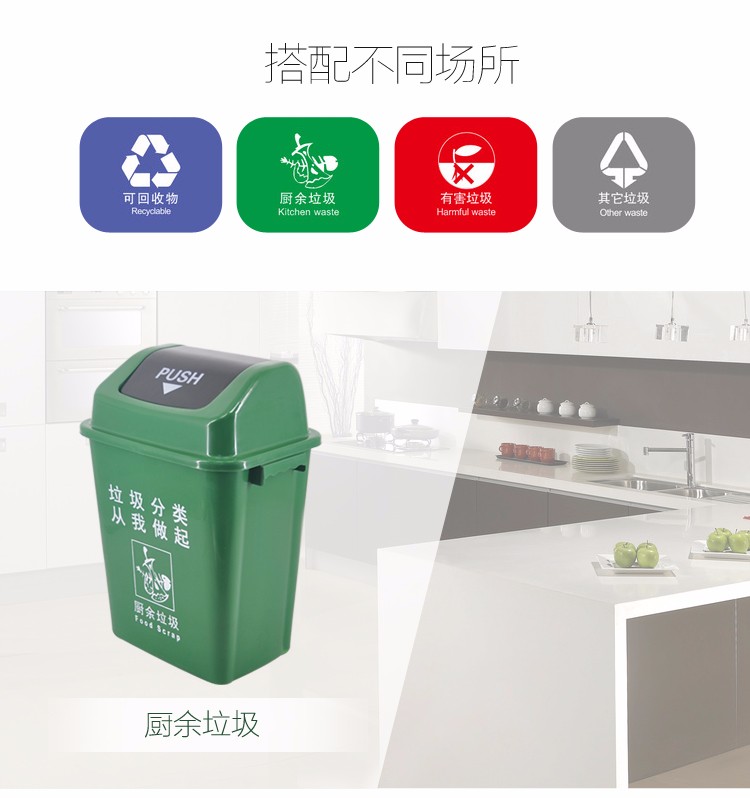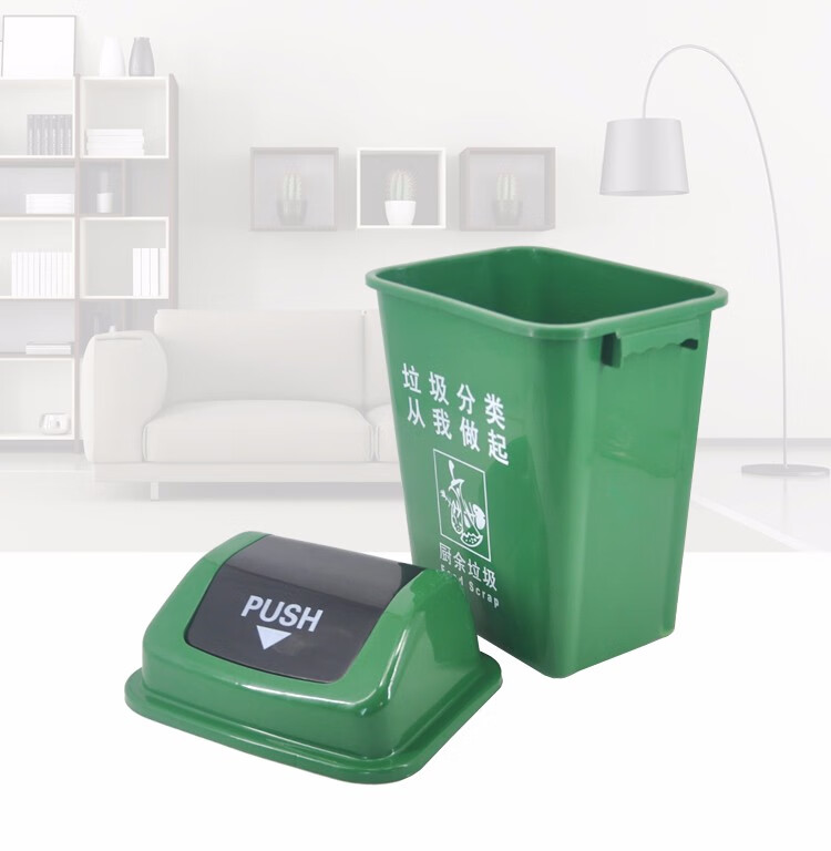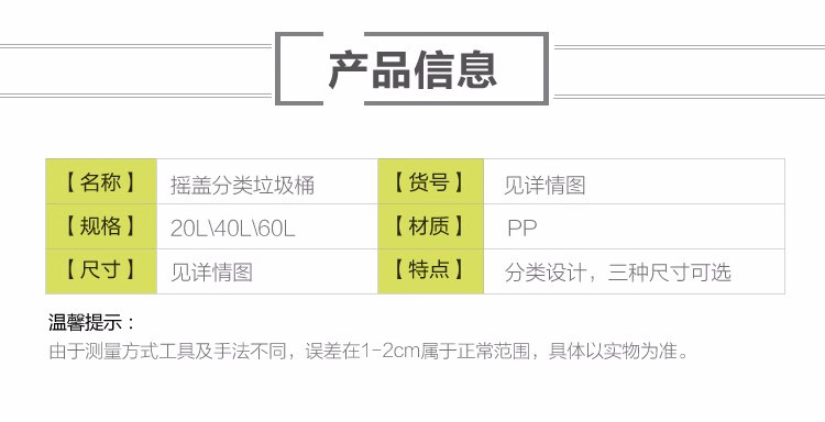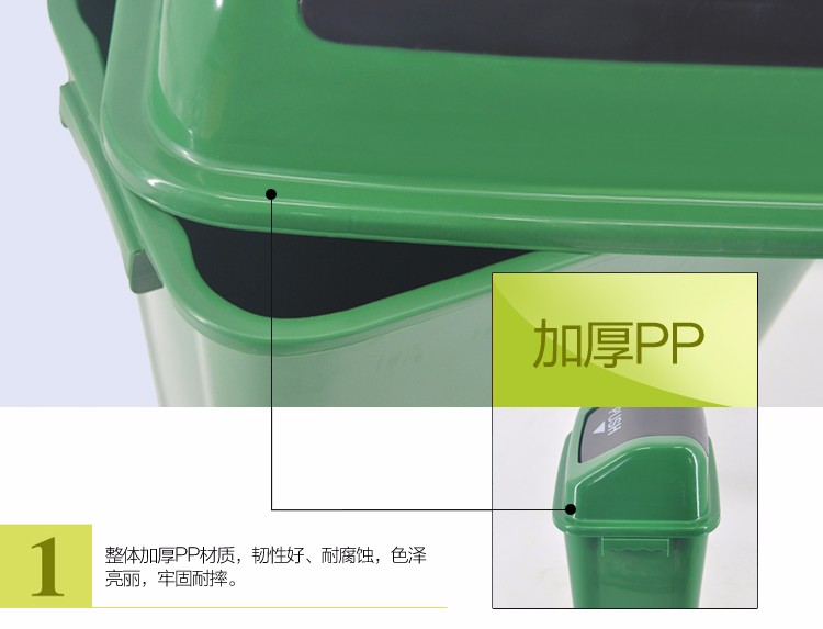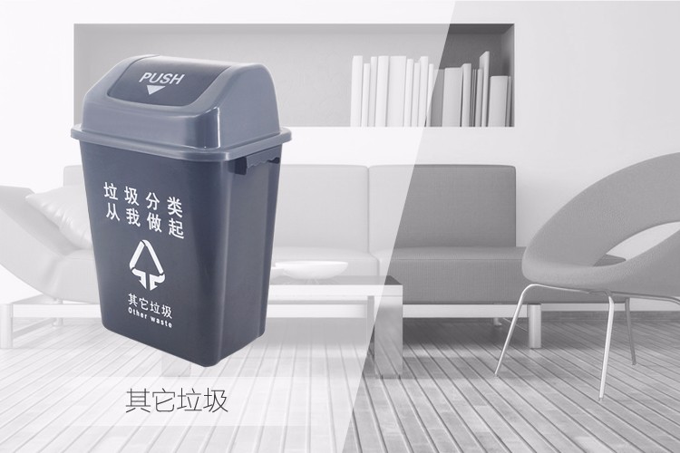 兰诗(LAUTEE)LJT2217 灰色分类款摇盖垃圾桶 40L 户外桶