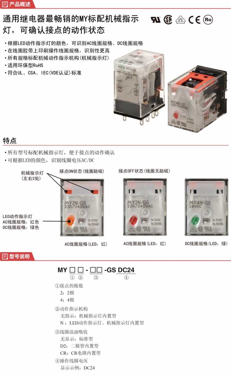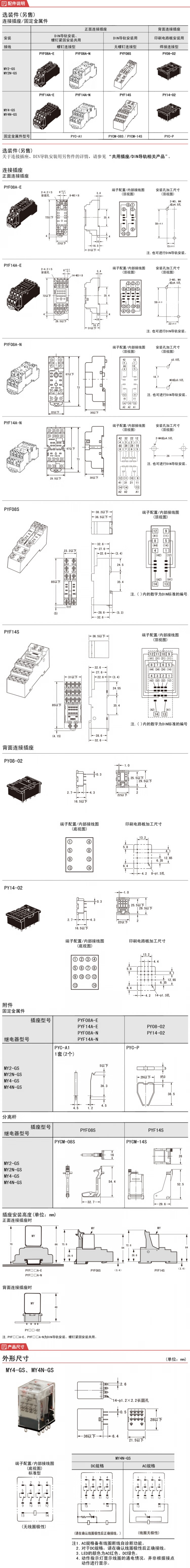 继电器 F 奥姆龙/OMRON MY4N-GS AC200/220 BY OMZ/C
