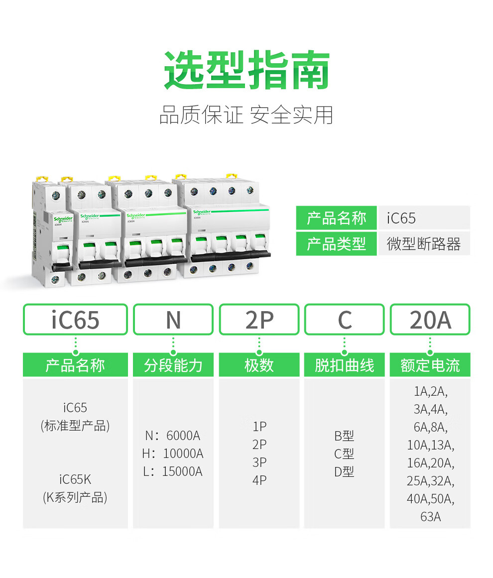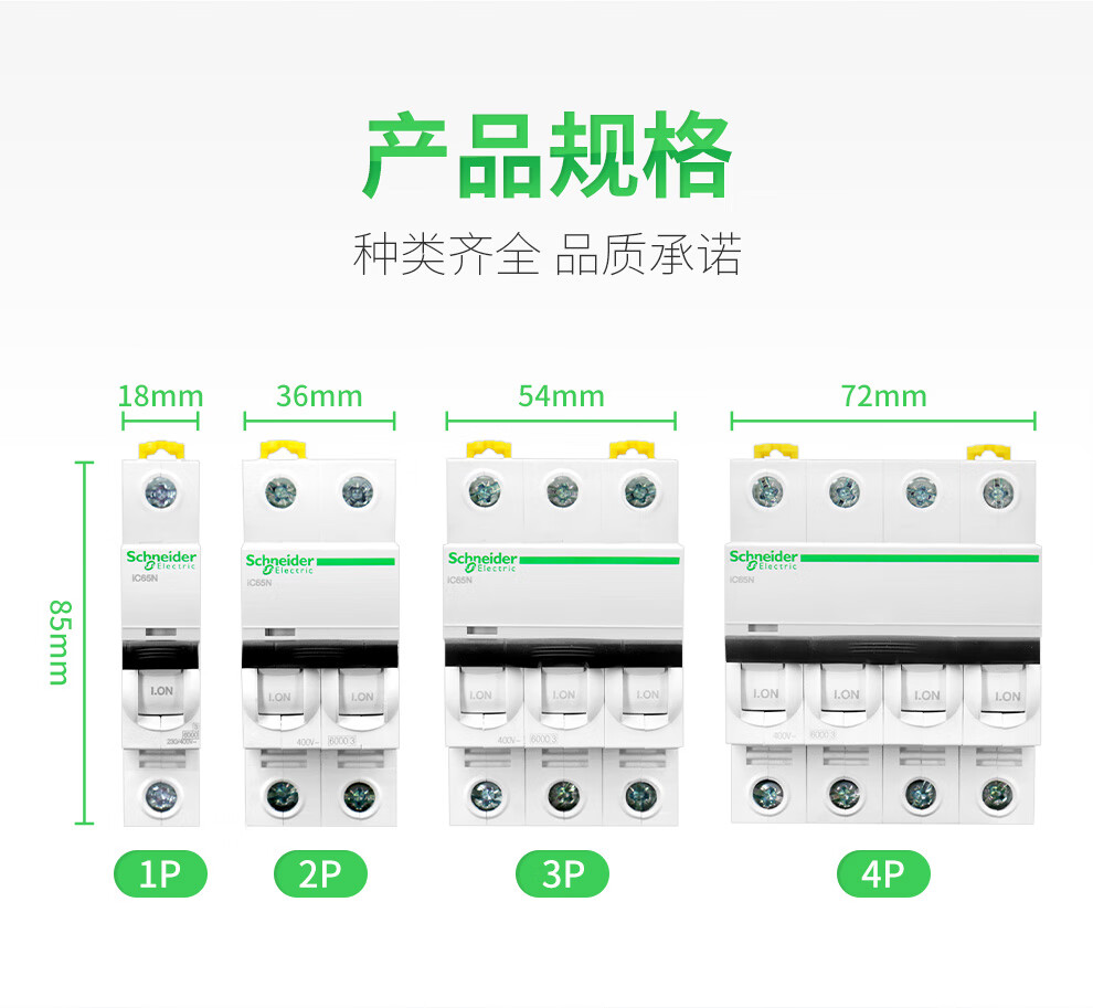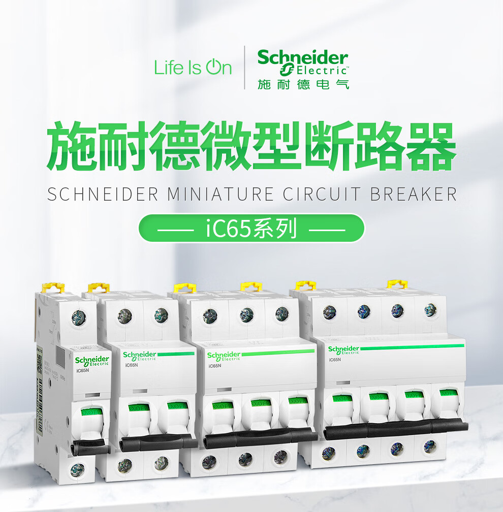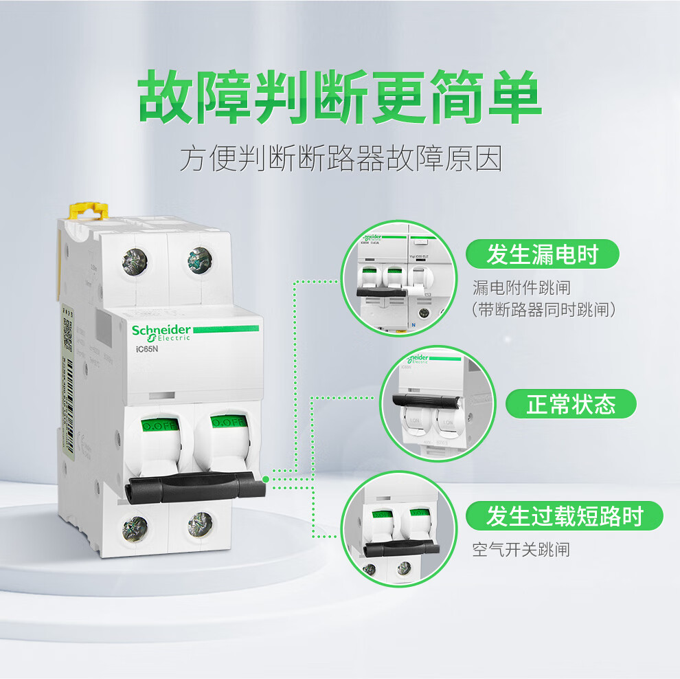 施耐德空气开关A9系列IC65N小型断路器2P双进双出 C型63A 空开总闸开关A9F18263