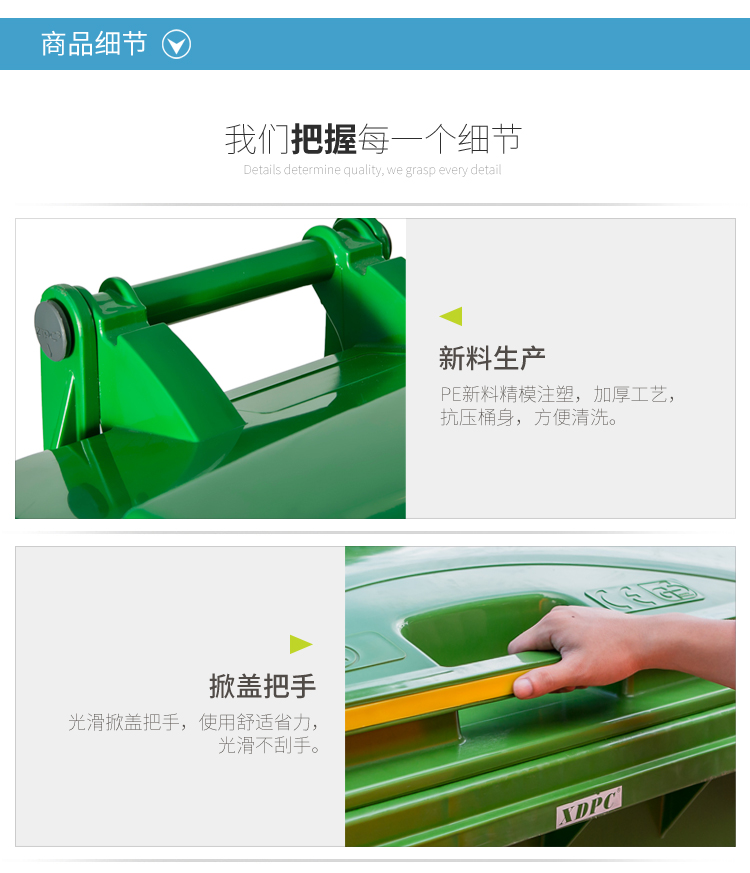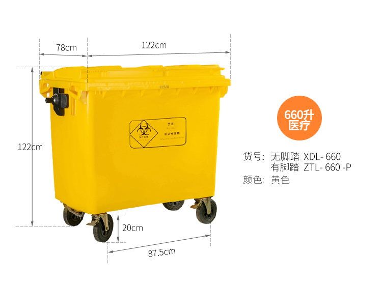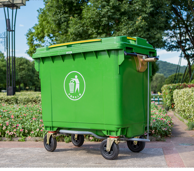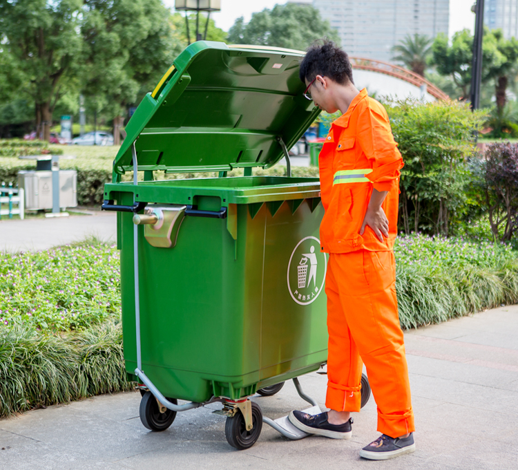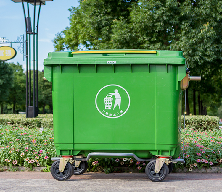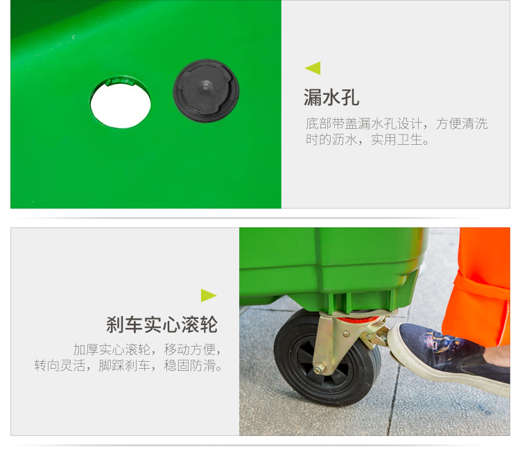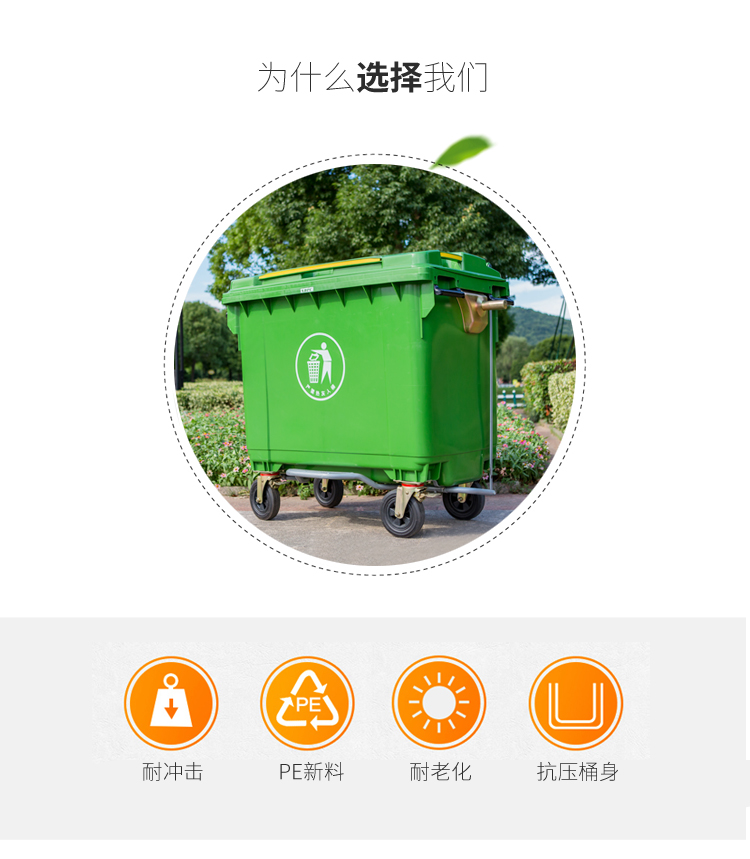尺寸: 104*108*120CM 货号: ZTL-1100A-1 名称: 环卫垃圾车手推清洁车有脚踏 重量: 57KG 规格: 绿色1100L