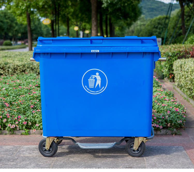科力邦(Kelibang) 户外垃圾桶 大号加厚120L商用塑料环卫垃圾桶带盖轮工业小区物业翻盖果皮箱 蓝色 单个