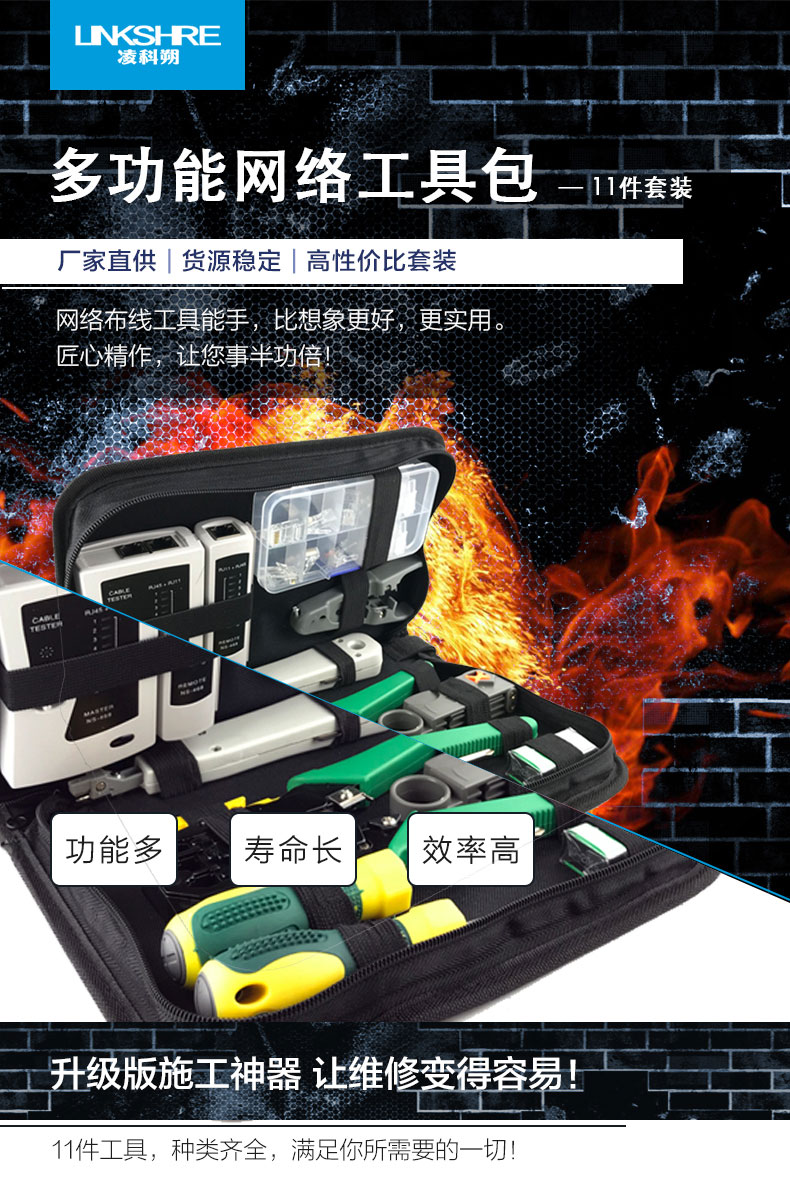 凌科朔(LINKSHIRE)多功能网络工具包11件套多功能弱电施工网络维修综合布线工具套 压线钳手提包套装