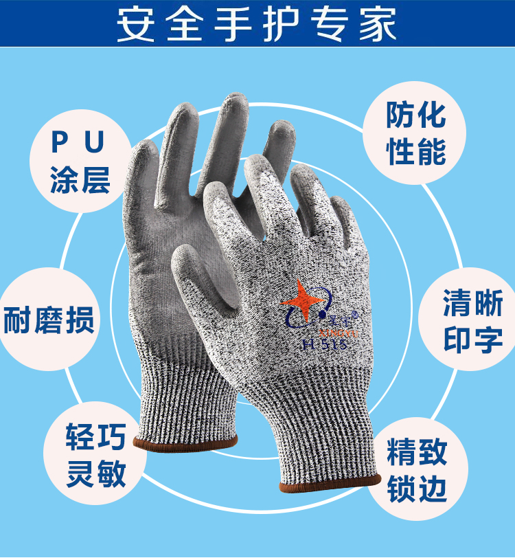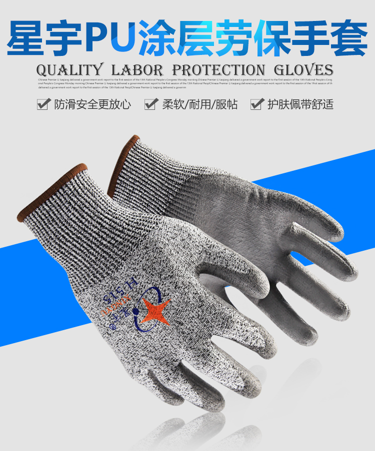 星宇(XINGYU)劳保手套 防切割手套 浸乳胶手套 防滑耐磨防护手套 工作劳防手套H515 12副装