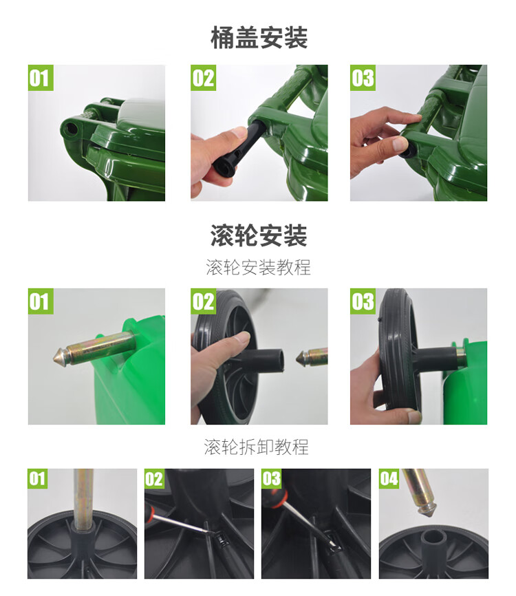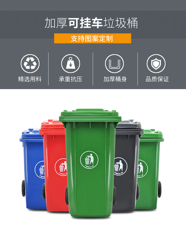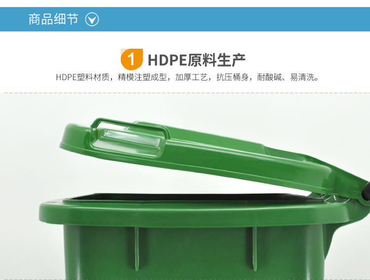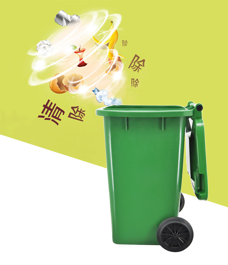 科力邦(Kelibang) 户外垃圾桶 大号加厚100L商用塑料环卫垃圾桶带盖轮工业小区物业翻盖果皮箱 绿色 单个