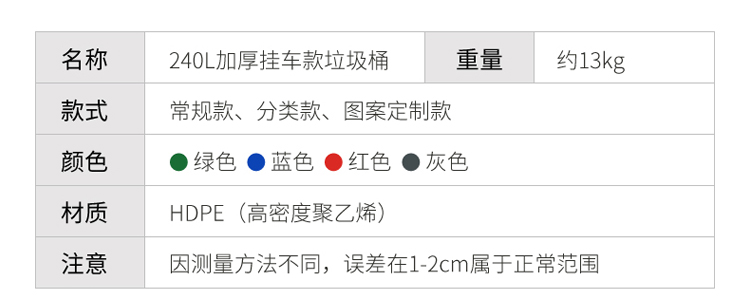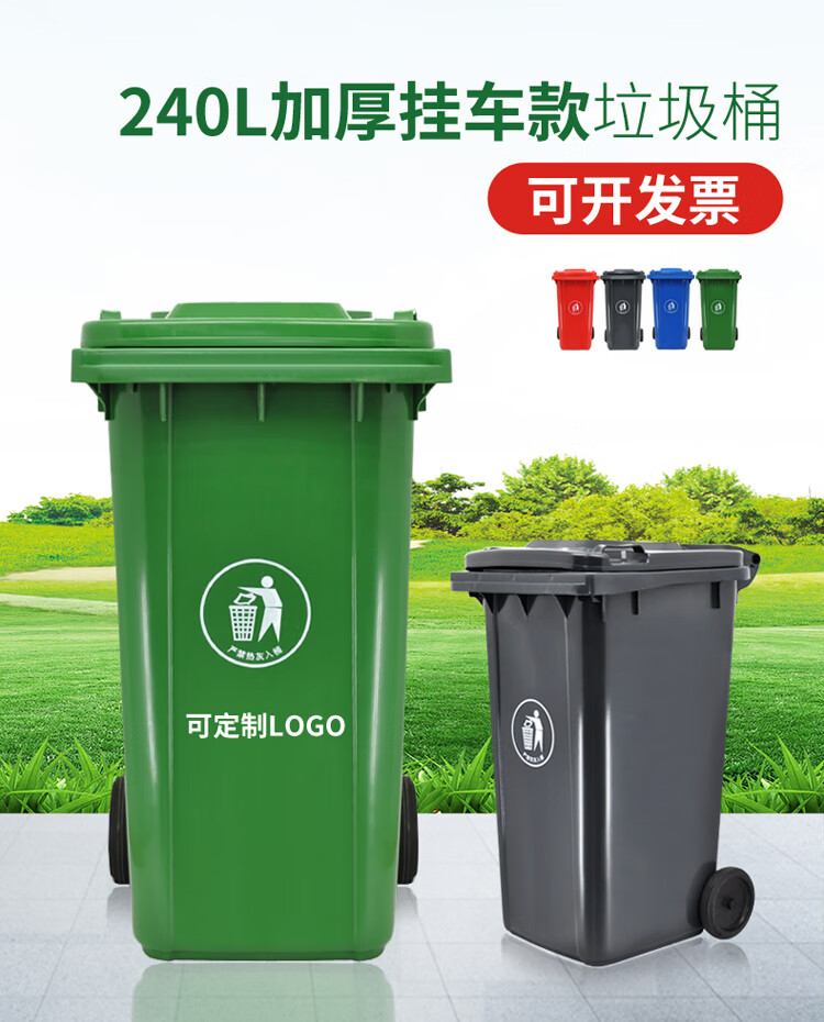 兰诗(LAUTEE)YY- 240B 可挂车户外环卫物业商用大号垃圾桶 蓝色240L