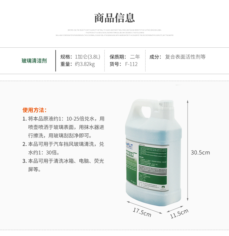 芳菲丽特(FOFILIT)F-112 玻璃清洁剂 3.8L多功能玻璃墙面镜面污渍光亮清洁 4桶/箱
