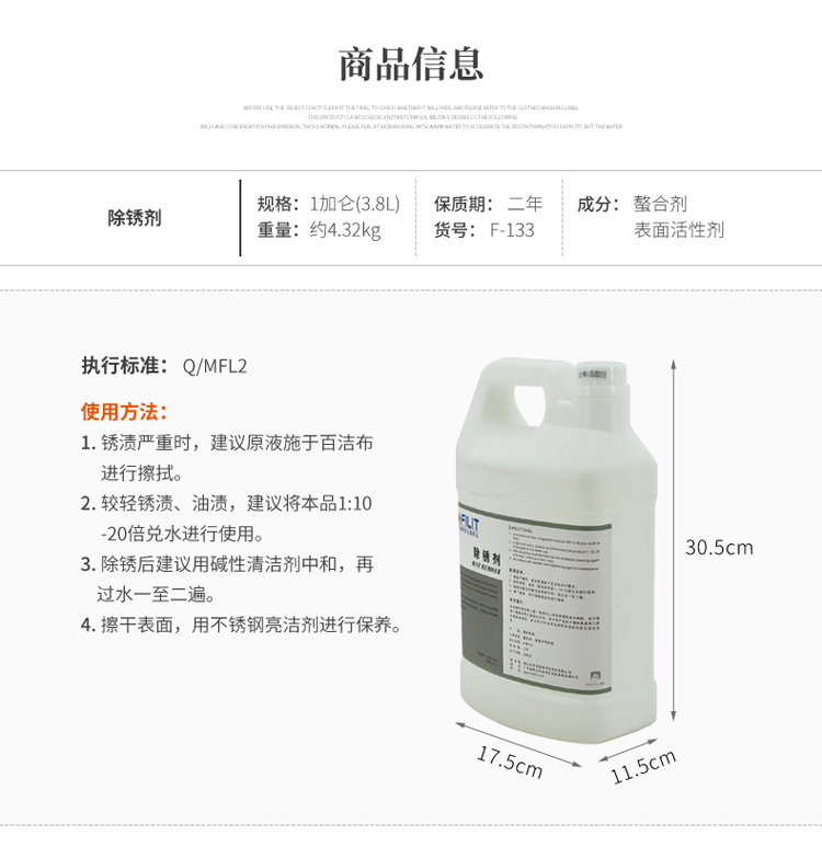 芳菲丽特(FOFILIT)F-133 除锈剂 3.8L五金金属钢铁除锈液水垢水锈污垢清洁 4桶/箱