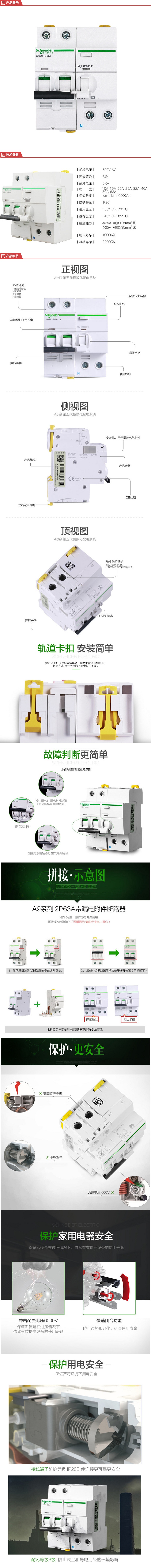 施耐德电气 空气开关(带漏电) iC65-20A/2P A9F18220+A9V53240