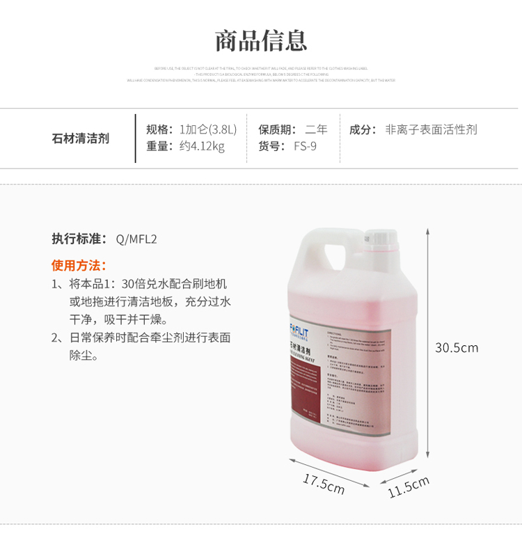 芳菲丽特(FOFILIT)FS-9 石材清洁剂 石材人造石材清洁保养剂石材去污除垢剂 3.8L*4瓶