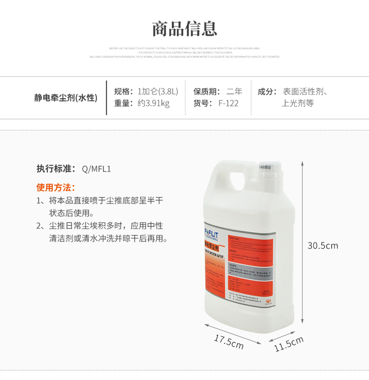 芳菲丽特(FOFILIT)F-122A 水性静电牵尘剂 静电吸尘液尘推油 3.8L*4瓶
