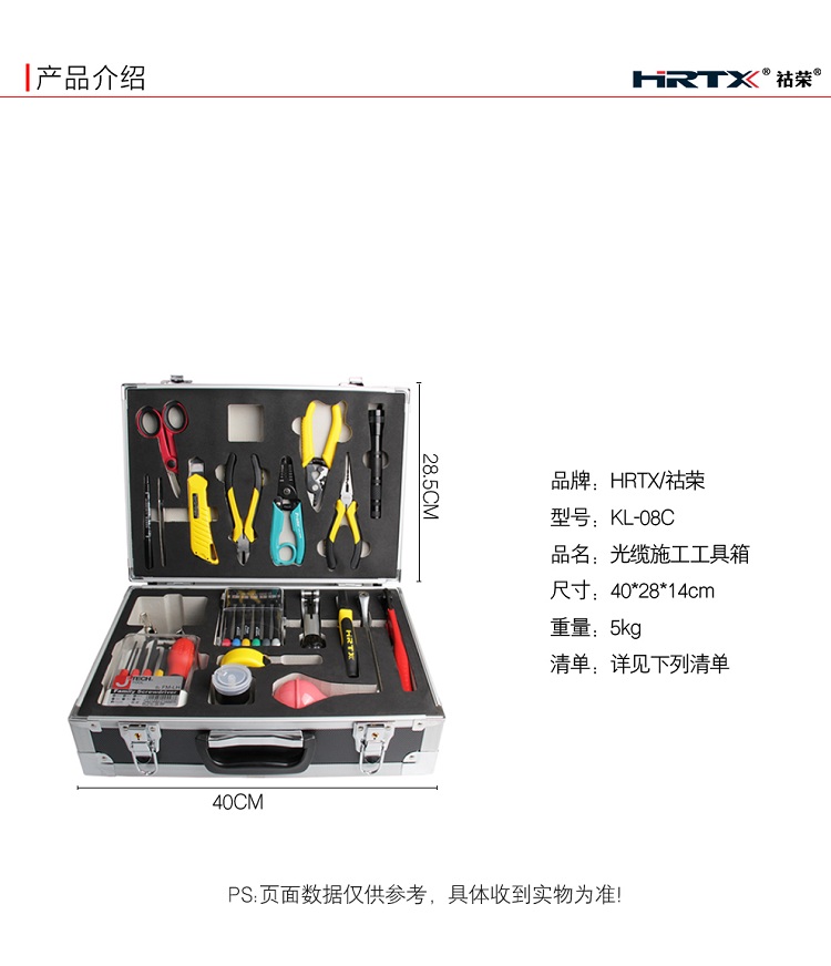 祜荣 HRTX 光缆施工工具箱 适用于光纤熔接配套工具箱 铝合金箱 KL-08C