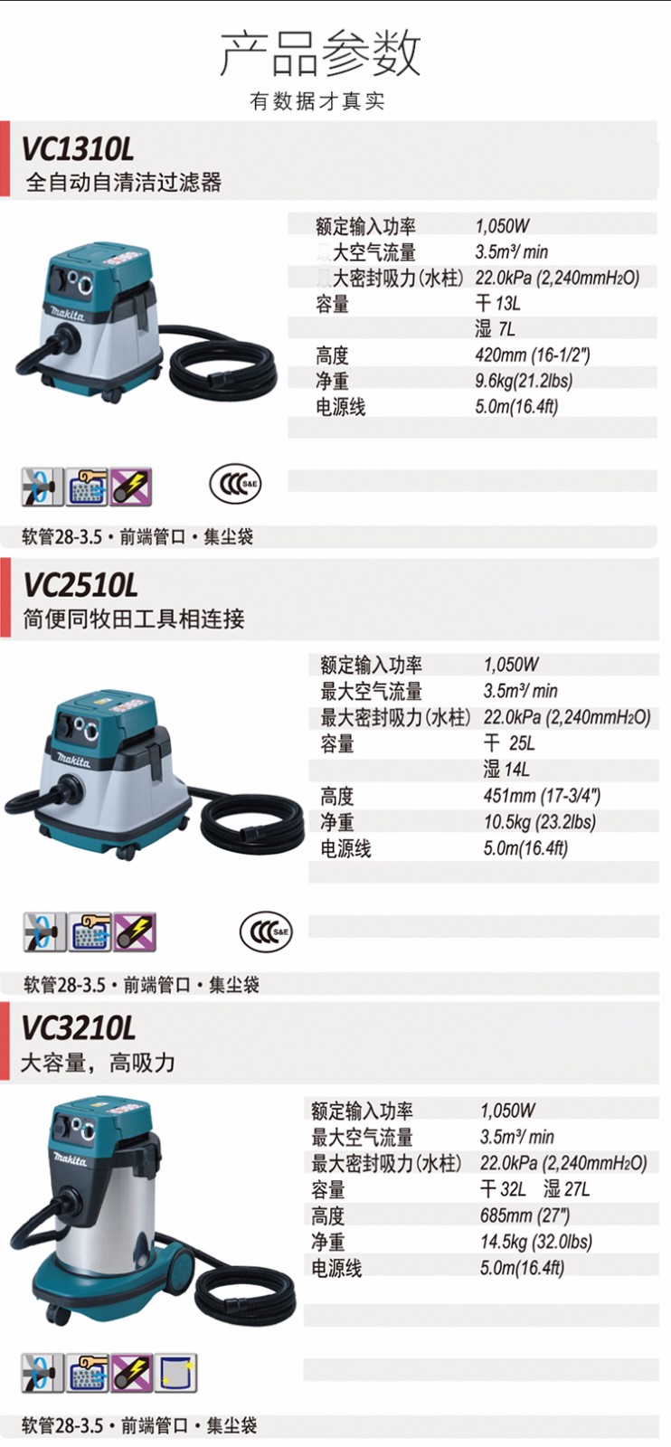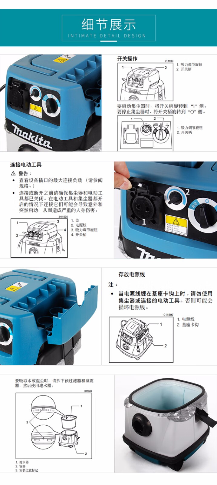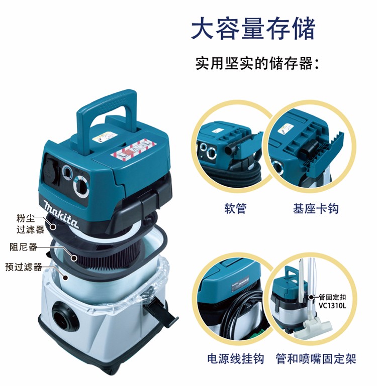 牧田(MAKITA)VC2510L 工业吸尘器干湿两用 工厂商用吸尘器 25L含吸尘器组件