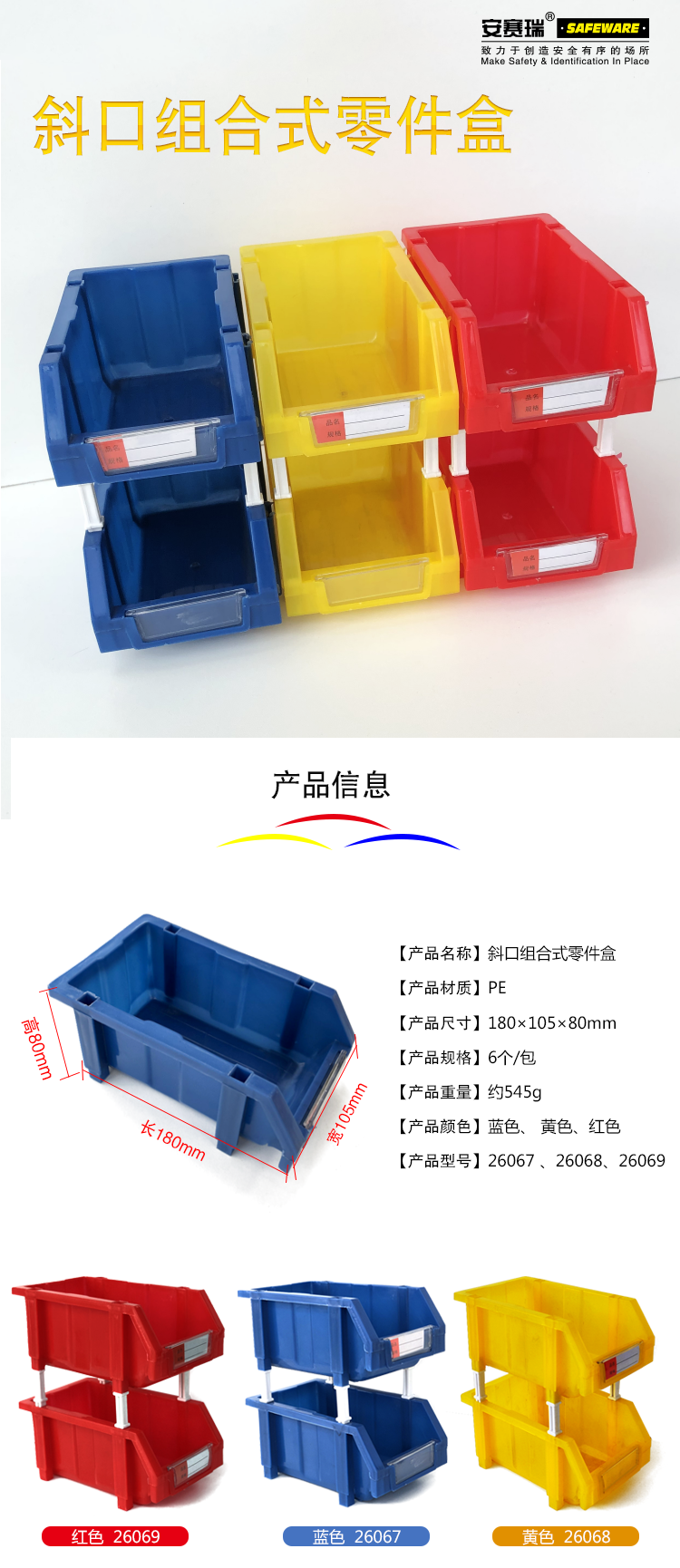 安赛瑞 加厚斜口组合式零件盒 仓库产品筐物料盒塑料盒螺丝工具盒整理箱零件箱周转箱(6个装 )黄26068