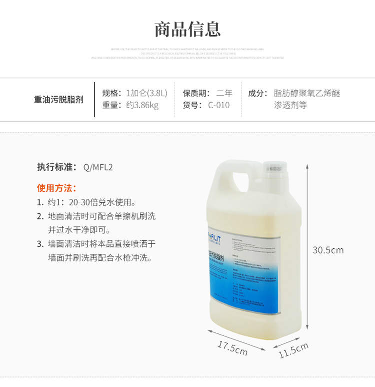 芳菲丽特(FOFILIT)C-010 重油污脱脂剂 商用油污乳化溶解剂 3.8L*4瓶