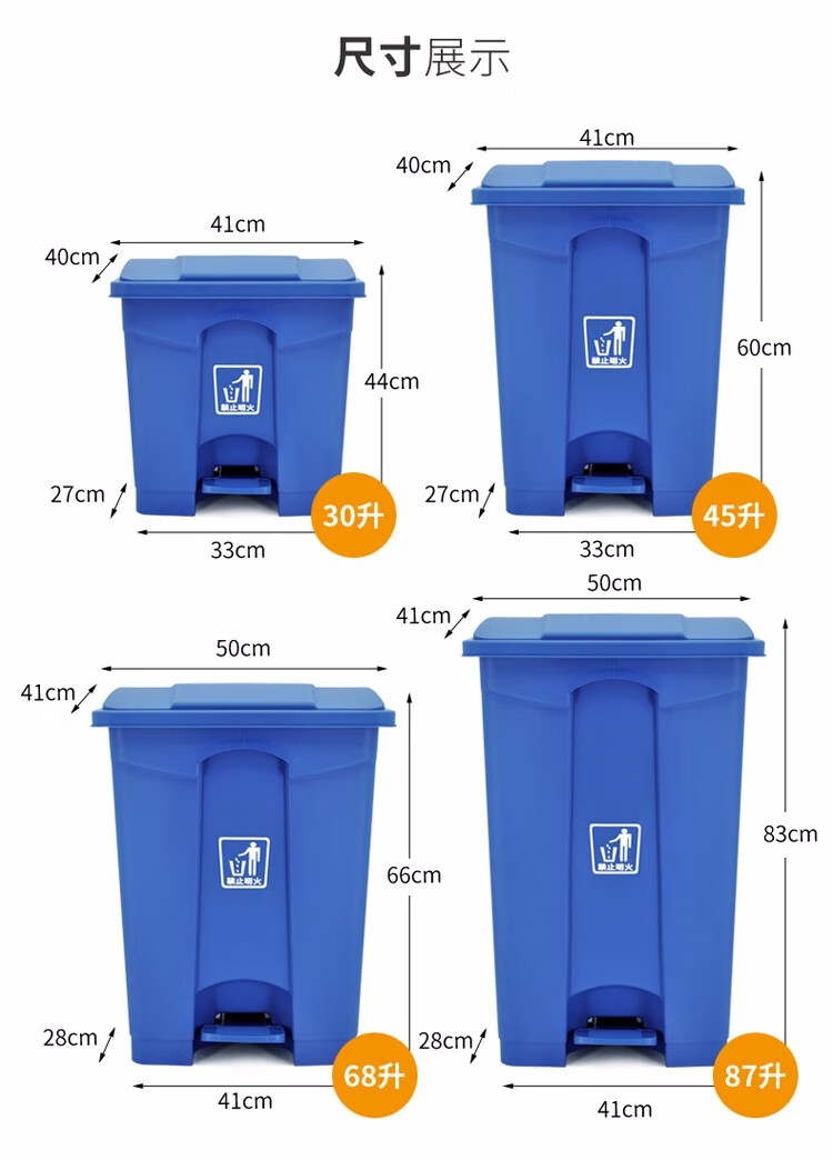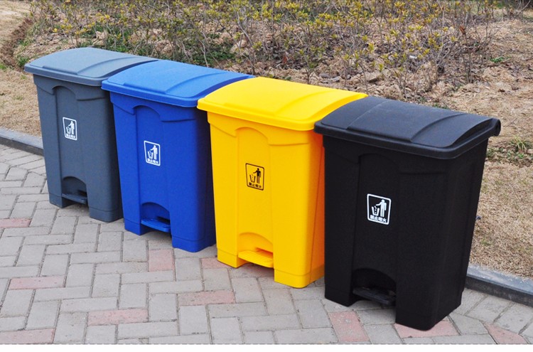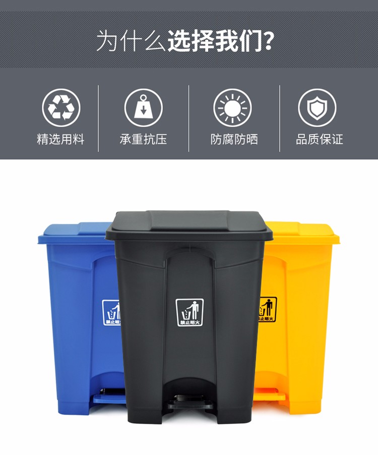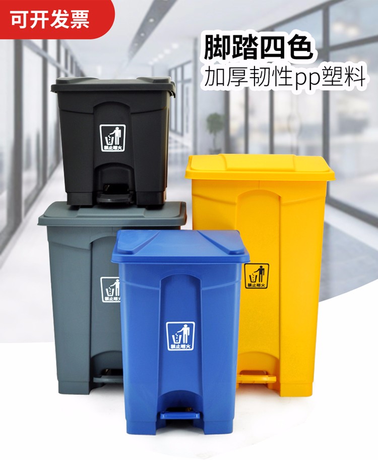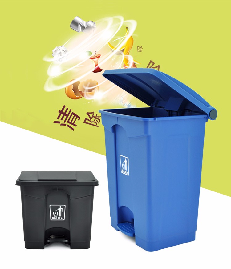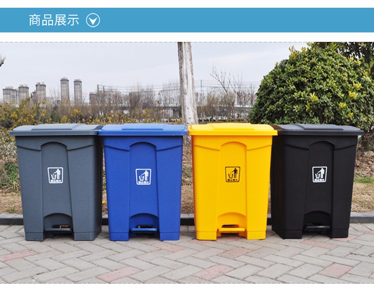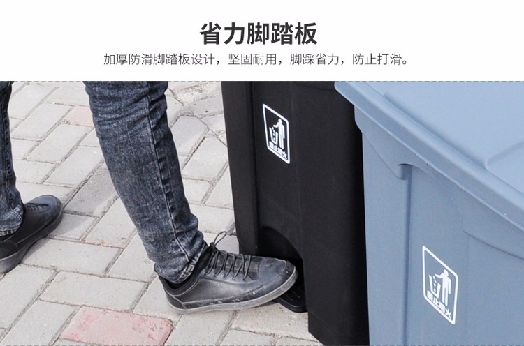 兰诗(LAUTEE)MJ18003 户外脚踏带盖垃圾桶 酒店宾馆商场翻盖果皮箱 68升黑色