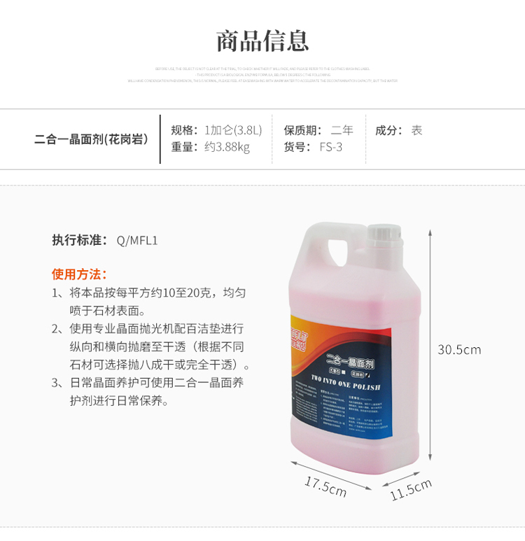 芳菲丽特(FOFILIT)FS-3 花岗岩二合一晶面剂 晶面养护剂 3.8L*4瓶