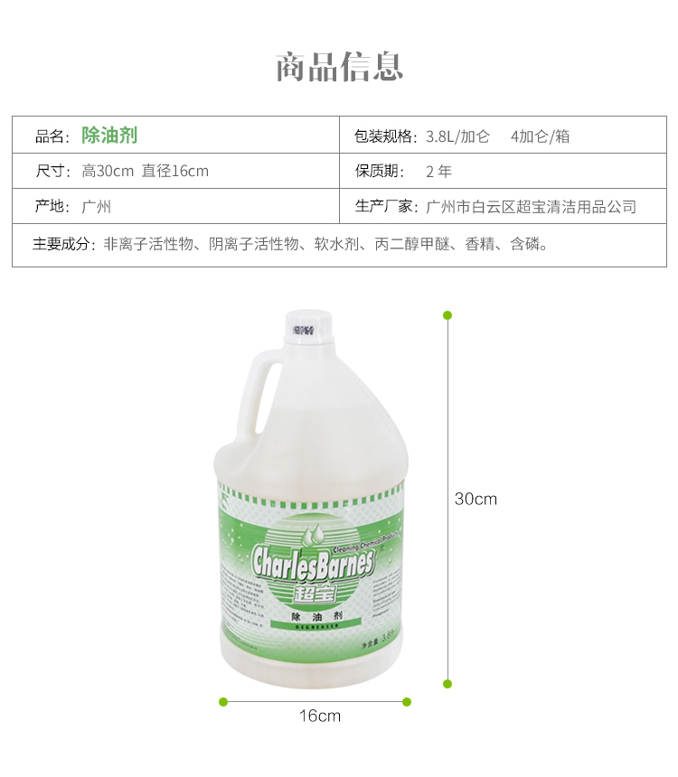 超宝(CHAOBAO)DFF006 除油剂 3.78L强力油污清洁剂厨房地面灶台重油污除油剂 4桶/箱