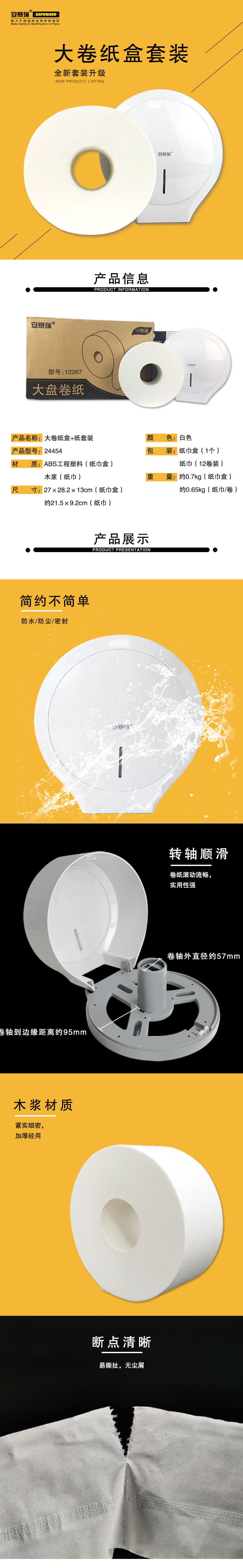 安赛瑞 大卷纸盒壁挂式 商场酒店写字楼物业办公卫生间大盘纸盒 大卷纸套装(12卷)24454