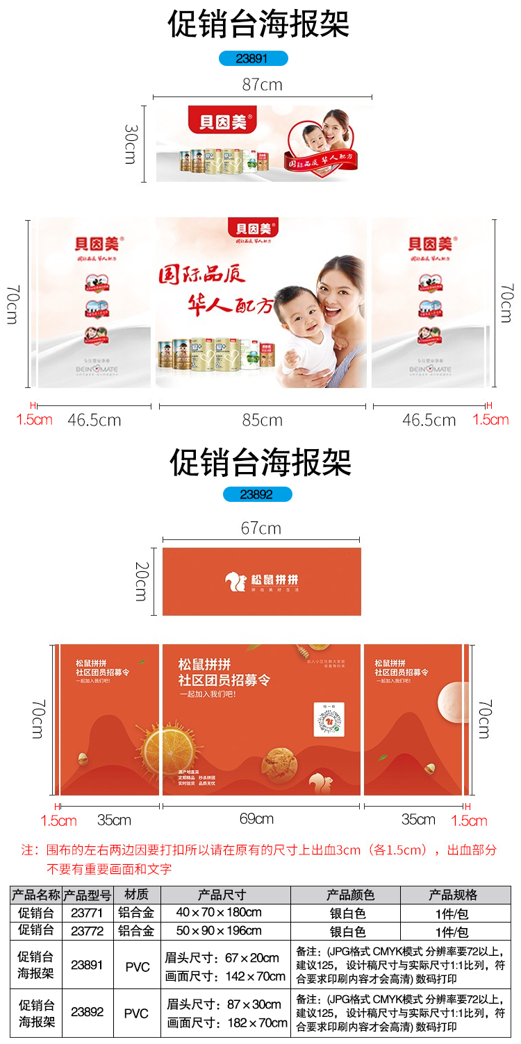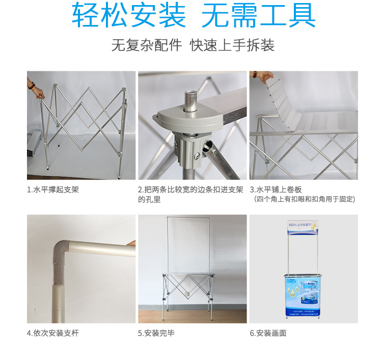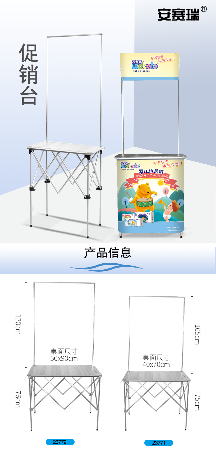 安赛瑞 促销台 铝合金促销展示柜台 40×70×180CM 便携拉网折叠桌咨询台超市宣传架宣传试吃台 仅架子23771