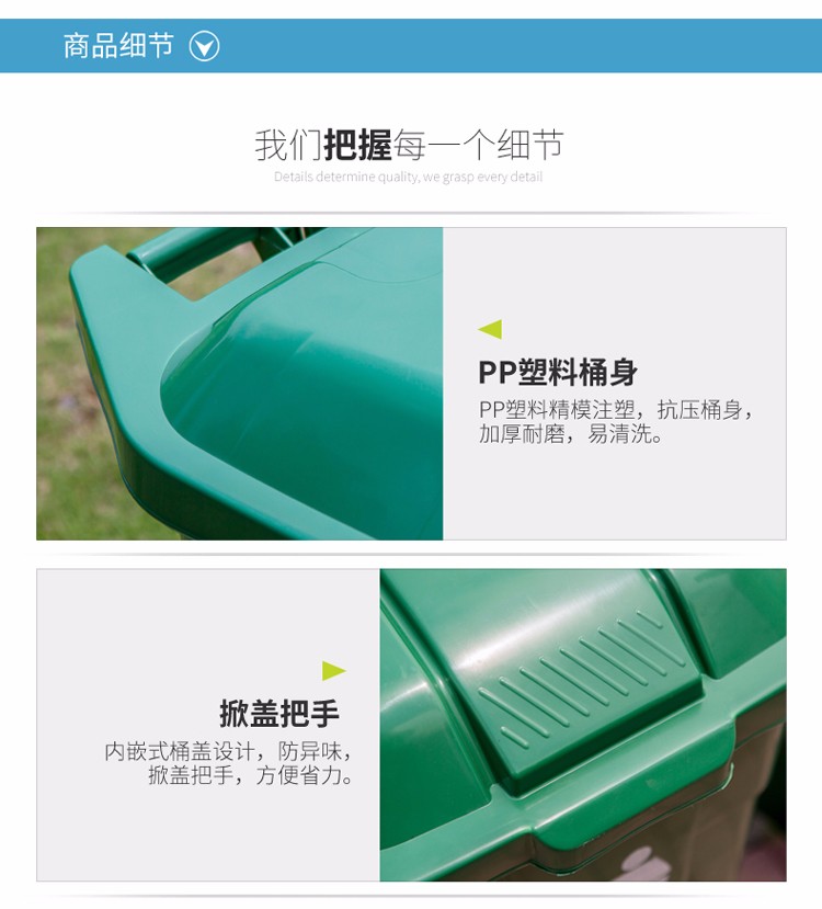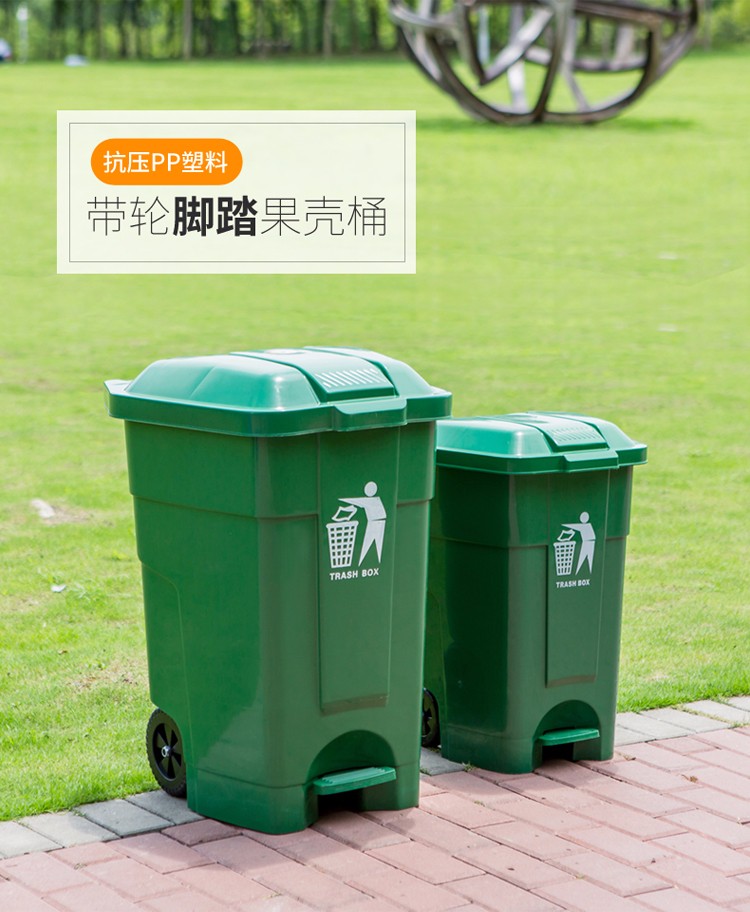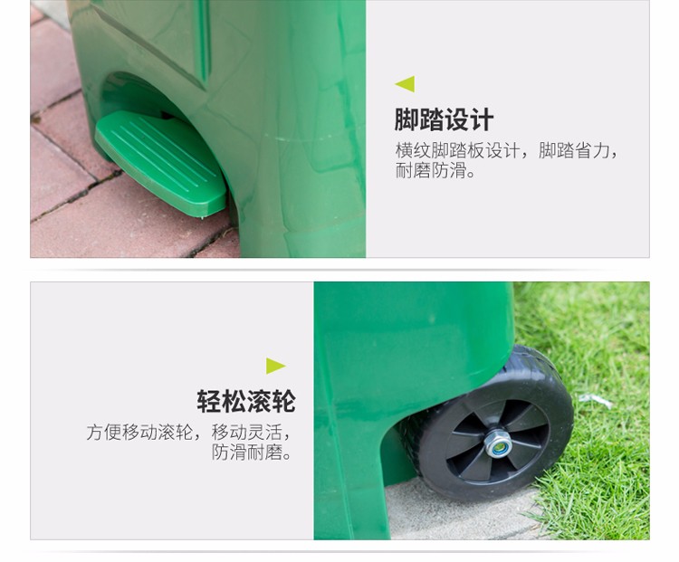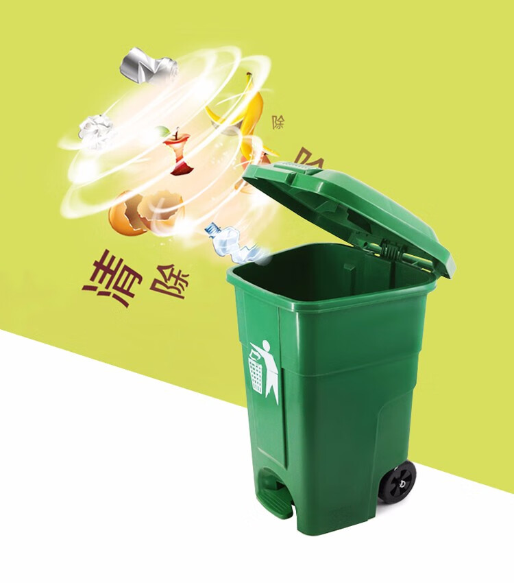 科力邦(Kelibang) 户外垃圾桶 大号加厚100L商用塑料环卫垃圾桶带盖轮工业小区物业翻盖果皮箱 绿色 单个