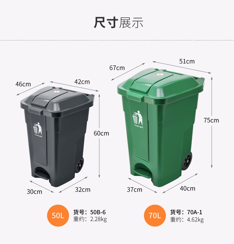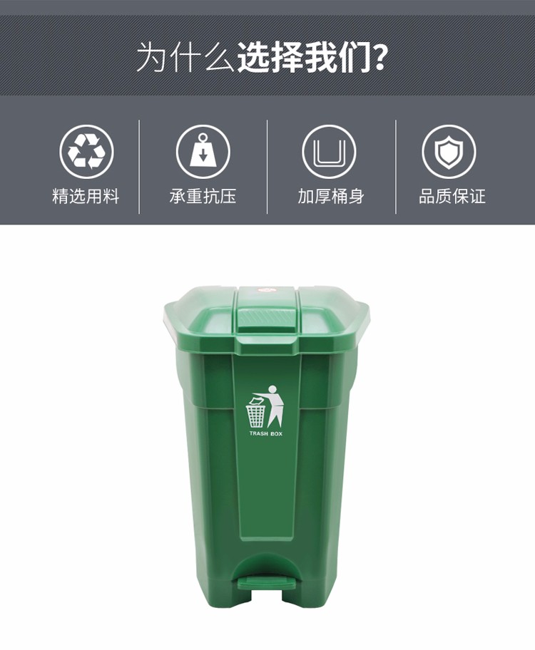 科力邦(Kelibang) 户外垃圾桶 大号塑料加厚50L商用环卫垃圾桶带盖分类工业小区物业翻盖果皮箱 绿色 单个