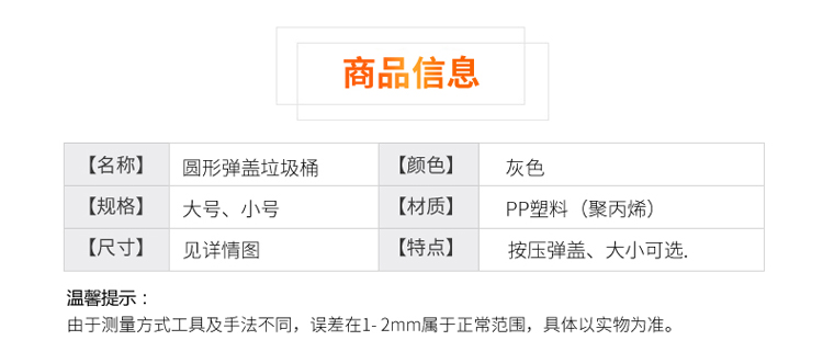 兰诗(LAUTEE)7056 圆形弹盖垃圾桶 物业商场户外按压式弹盖果皮箱 小号