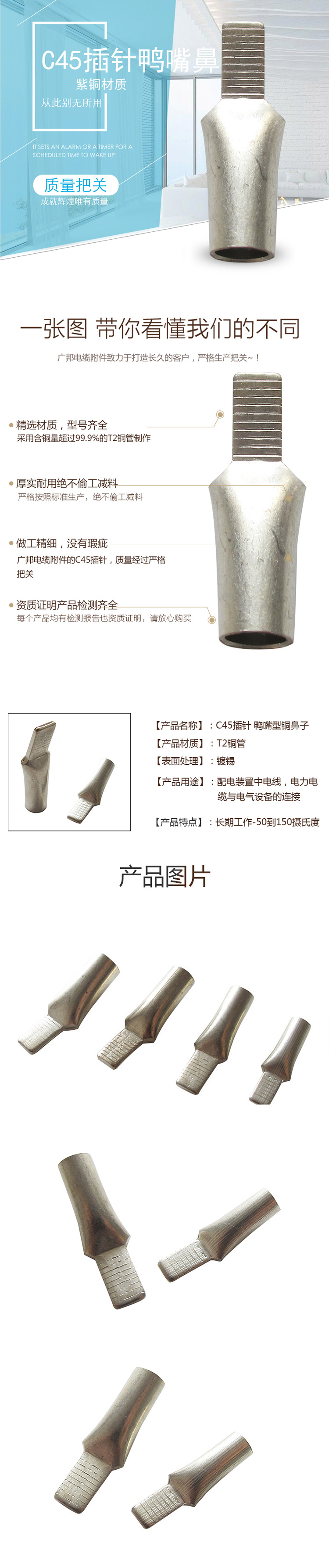 广邦 鸭嘴型接线端子 C45插针 紫铜 铜鼻子冷压端子铜线耳 C45-25 25平方 200只/包