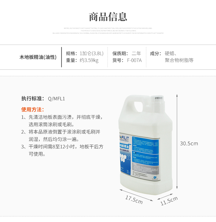 芳菲丽特(FOFILIT)F-007A 木地板精油(油性) 复合木地板原木地板保养去污护理精油 3.8L*4瓶