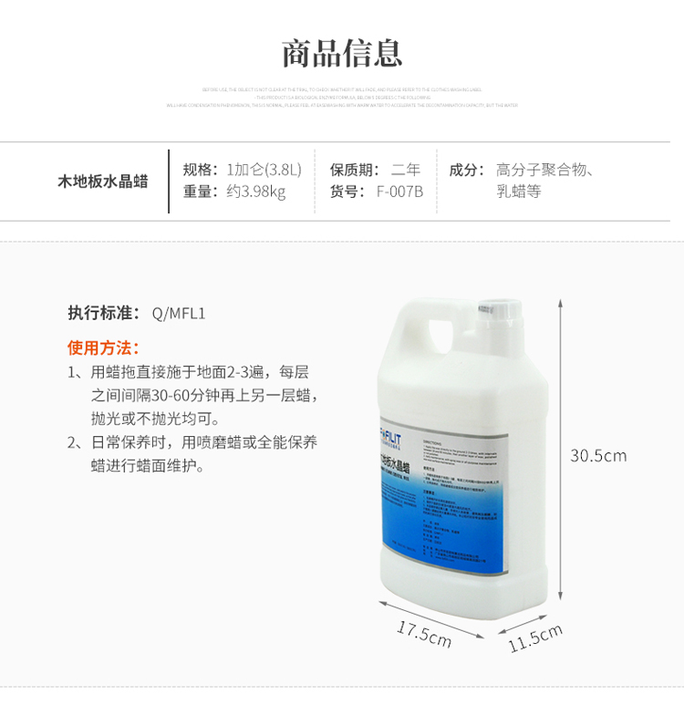 芳菲丽特(FOFILIT)F-007B 木地板水晶蜡 原木地板复合木地板保养护理剂 3.8L*4瓶