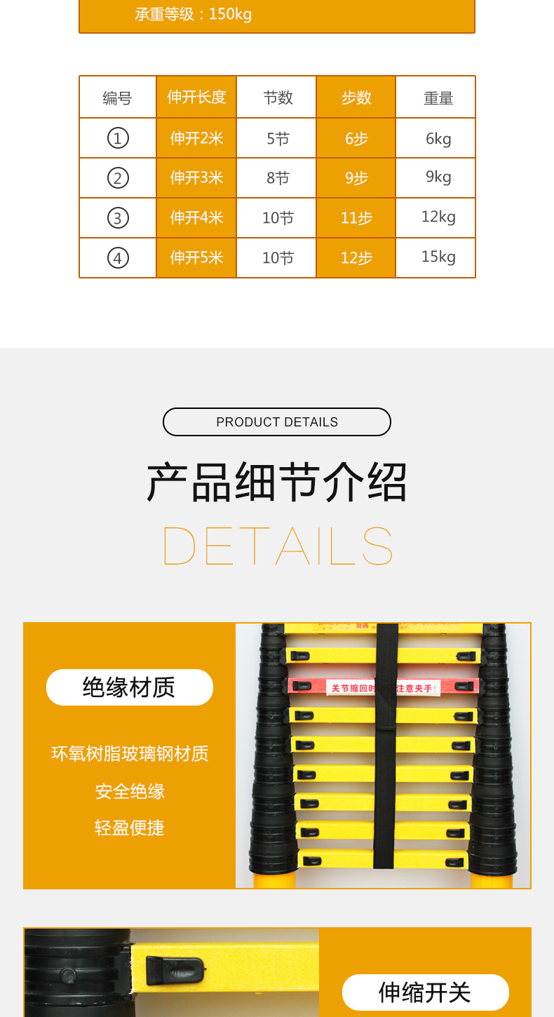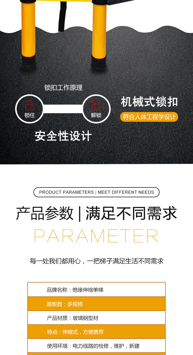 凌科朔(LINKSHIRE)2米绝缘单面伸缩梯 绝缘梯 玻璃钢 电力电工绝缘单面梯2米