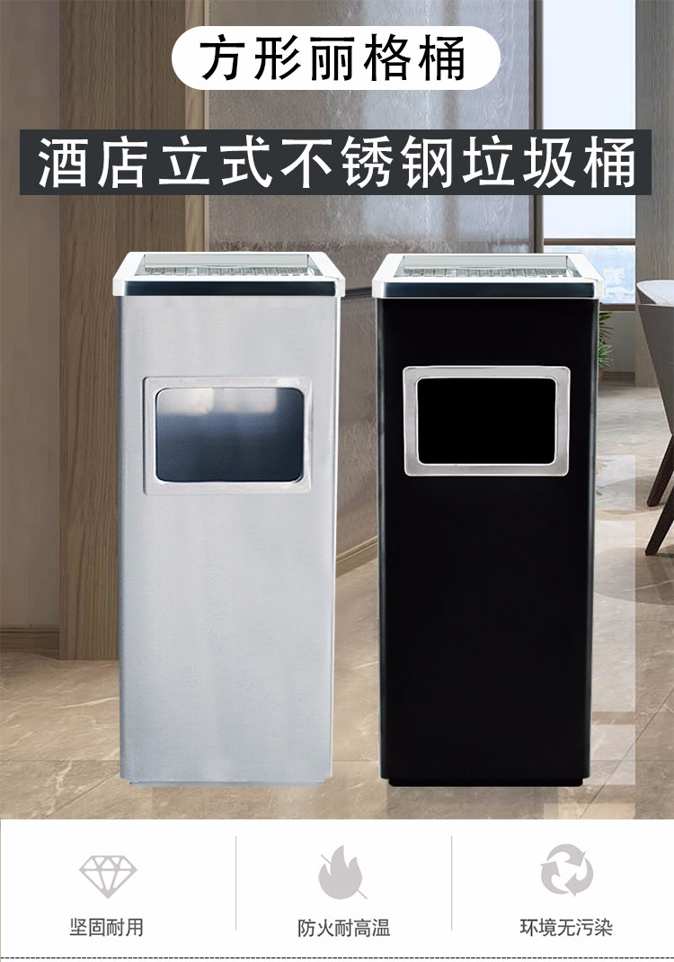 兰诗(LAUTEE)GPX-013 方形丽格桶 酒店商场电梯口立式座地垃圾桶烟灰桶 墨绿