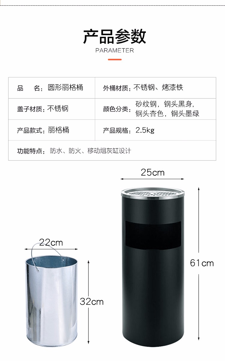 兰诗(LAUTEE)GPX-027 圆形丽格桶 酒店商场电梯口座地垃圾桶 烟灰桶 杏色