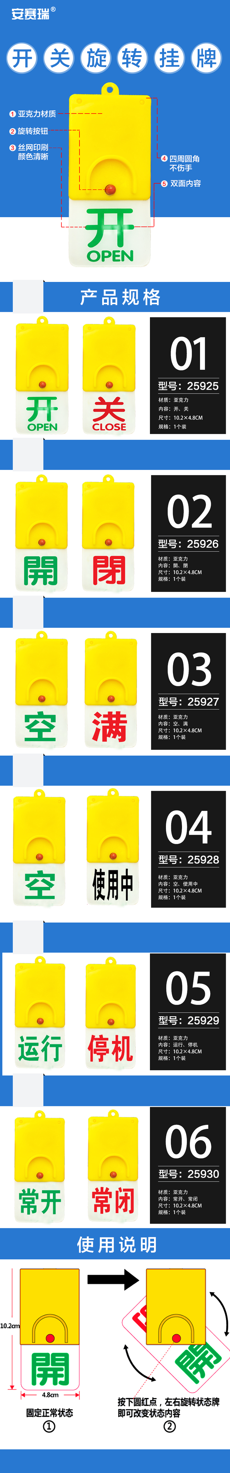 安赛瑞 开关旋转吊牌 双面阀门吊牌(空/使用中)旋转状态牌 设备安全阀门标识牌 102×48mm 25928