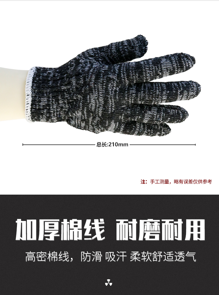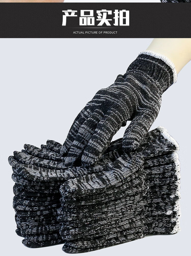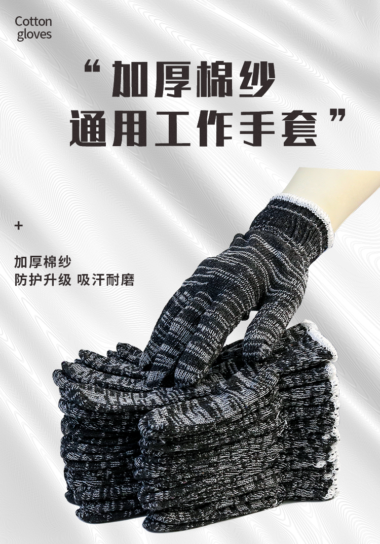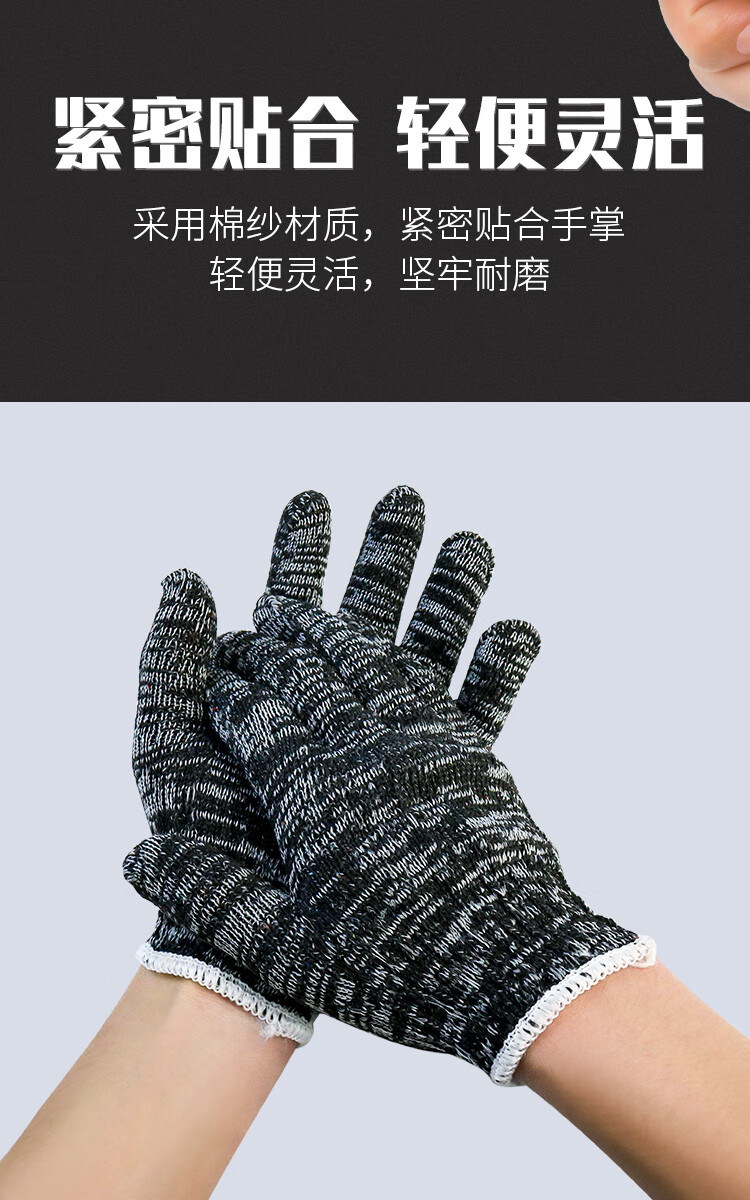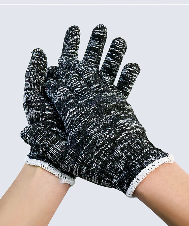 盖歇茂(GXM)劳保线手套加厚加密耐磨工作黑灰色棉纱手套10双/包