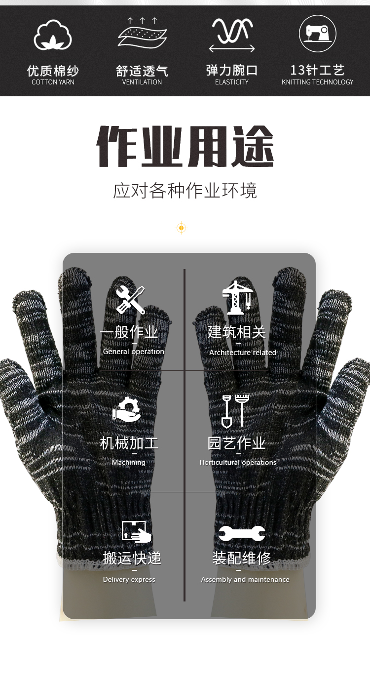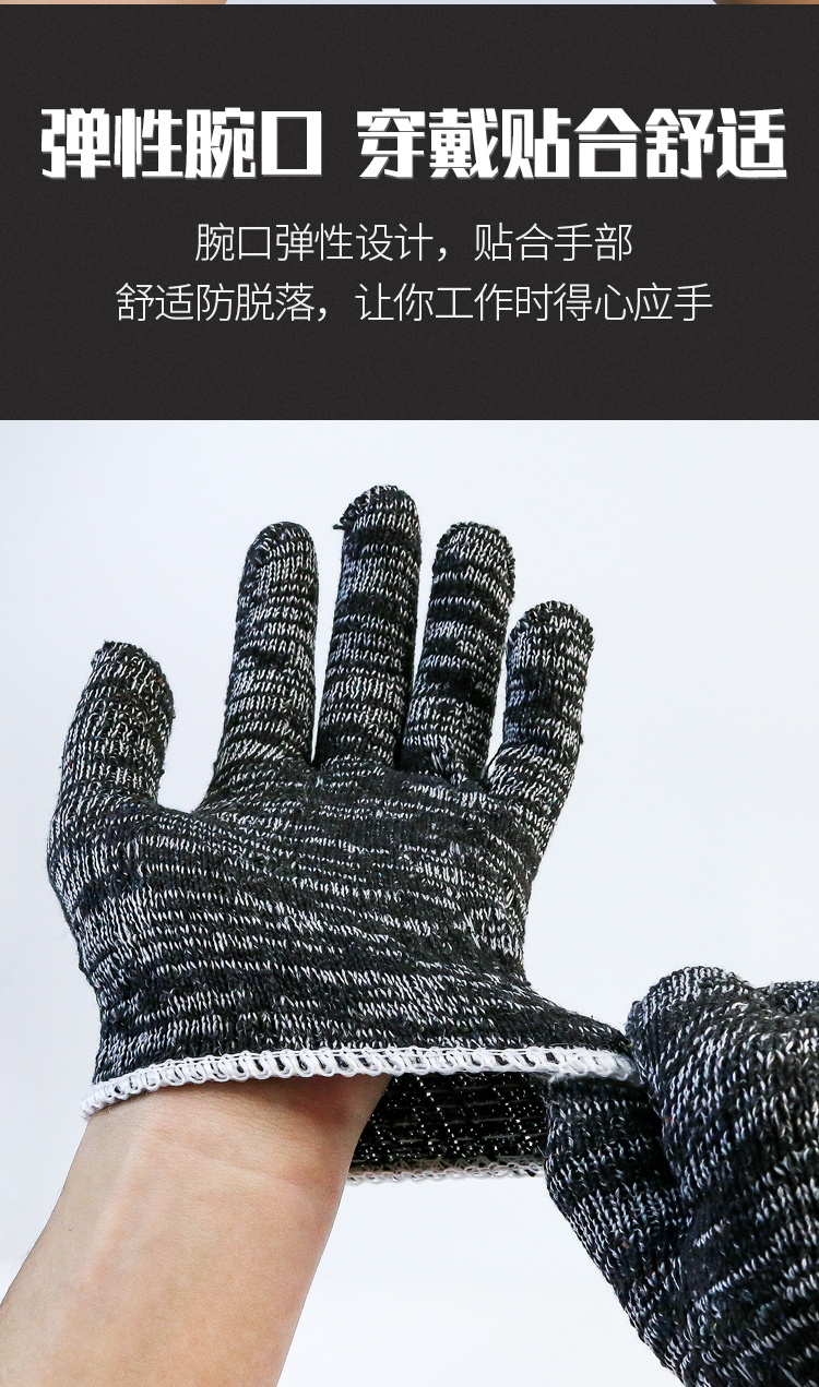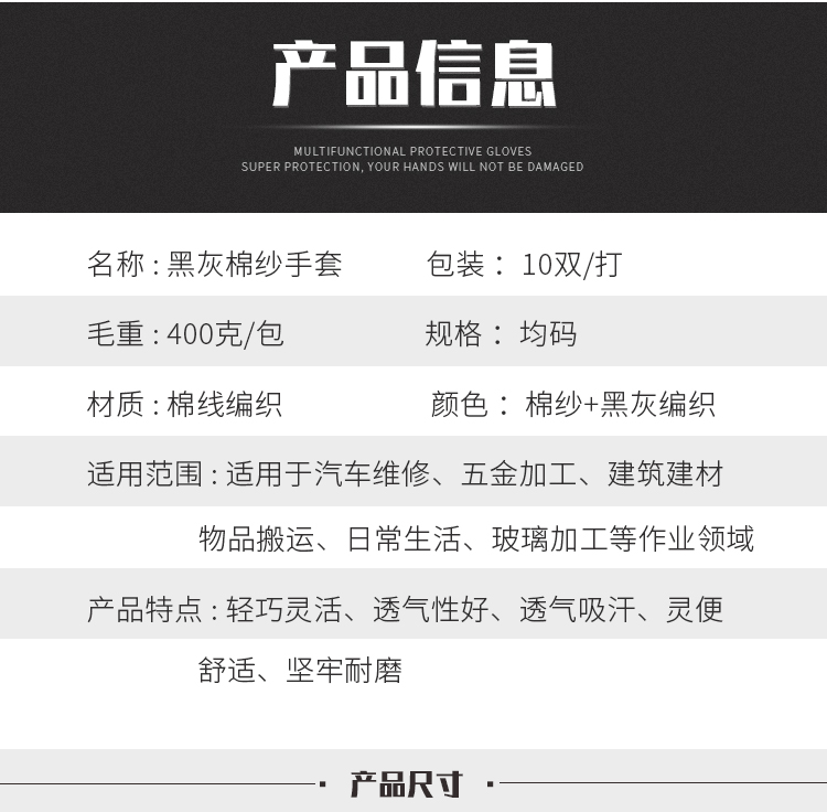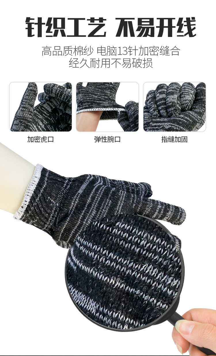 盖歇茂(GXM)劳保线手套加厚加密耐磨工作黑灰色棉纱手套10双/包