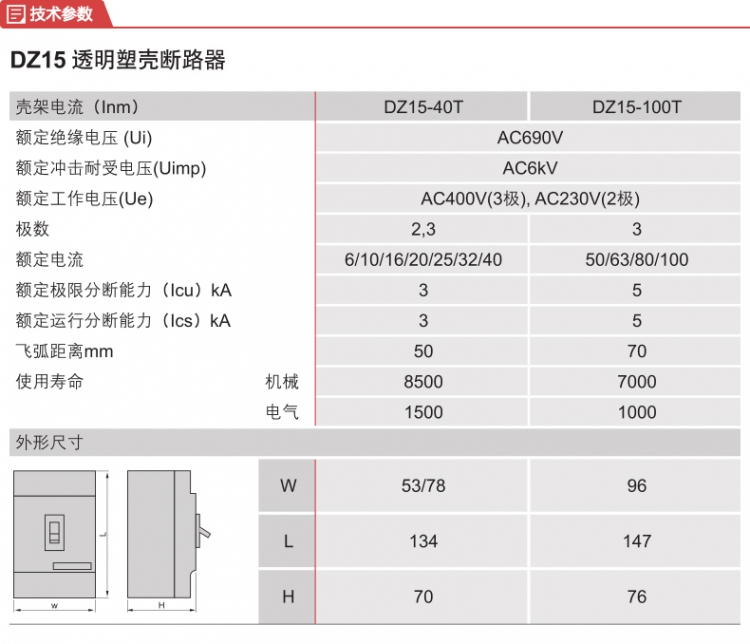 德力西电气 塑壳断路器 DZ15-40T/2901 40A 透明