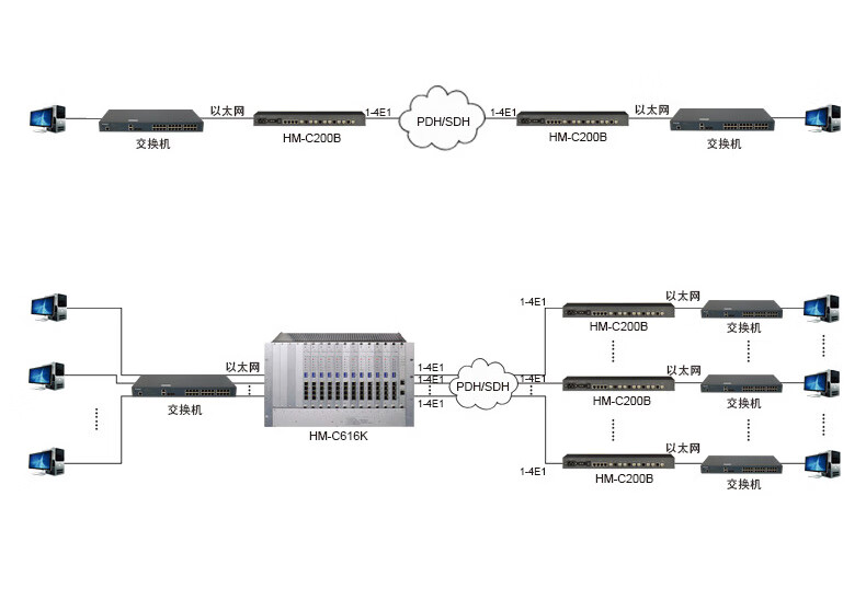 HM-C200B 4E1/10(100)Base-T 协议转换器
