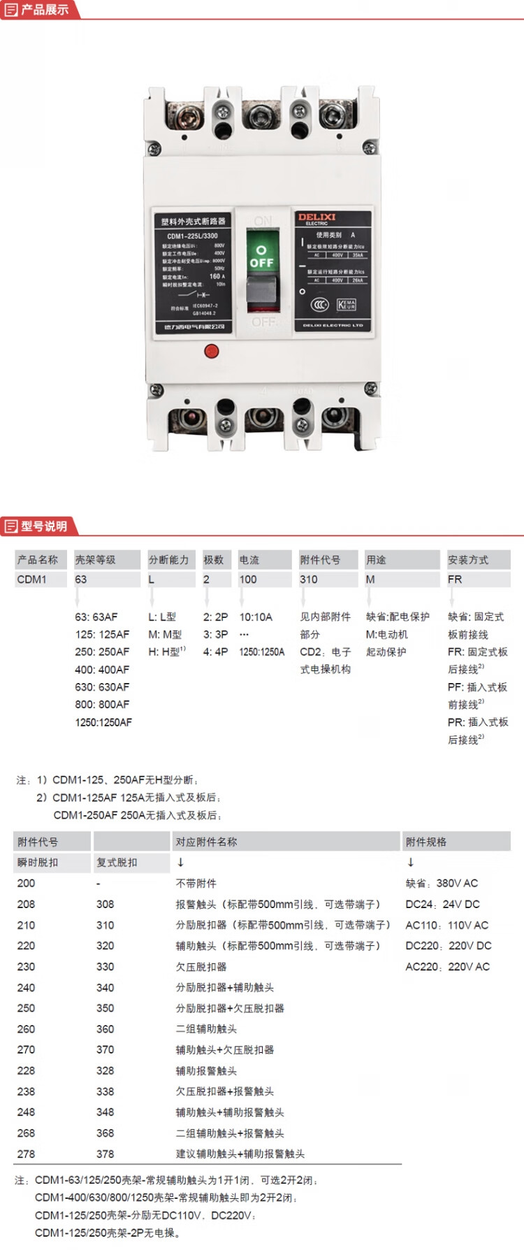 德力西电气 CDM1系列塑料外壳式断路器CDM1-125L/3300 125A