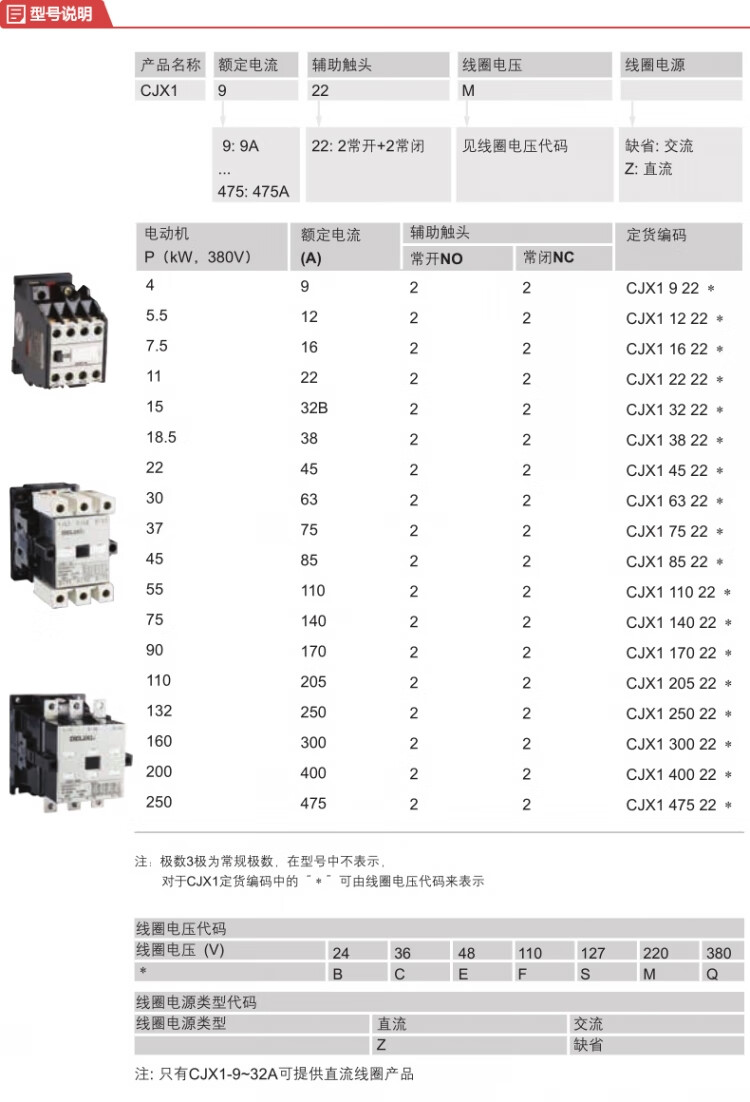 德力西电气 通用型交流接触器 CJX1-110/22 50Hz 380V
