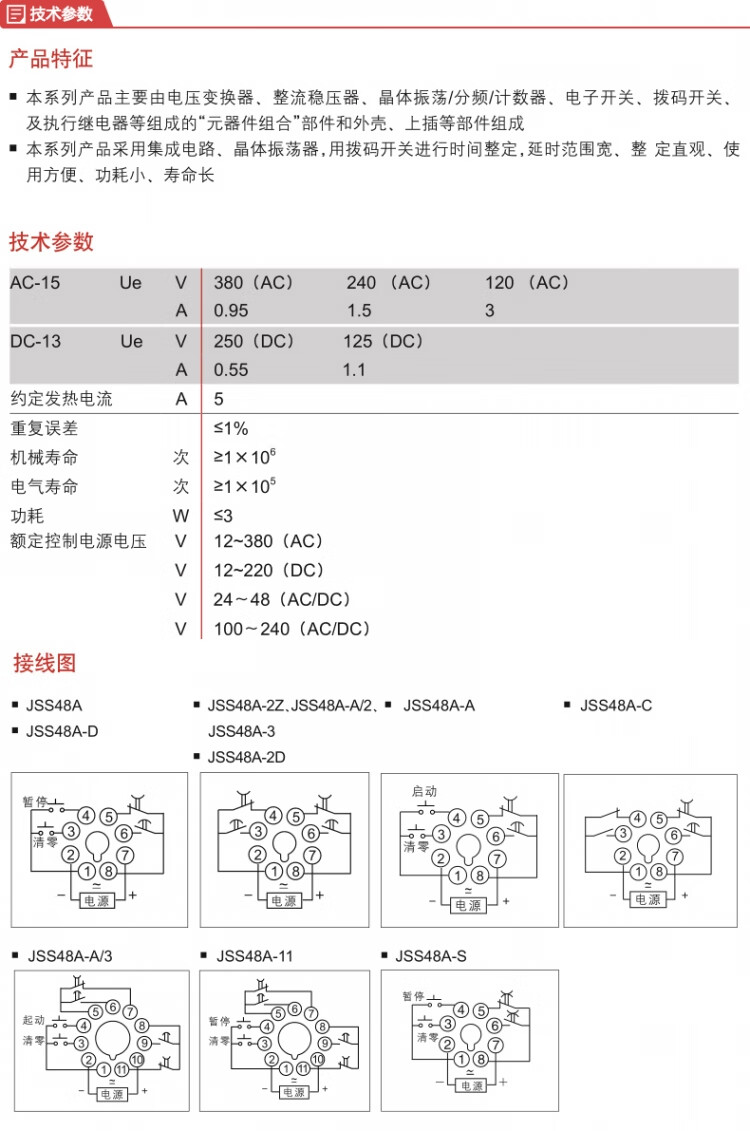 德力西电气 数显式时间继电器 JSS48A-S 0.1S-99H AC380V 带P2CF-08座