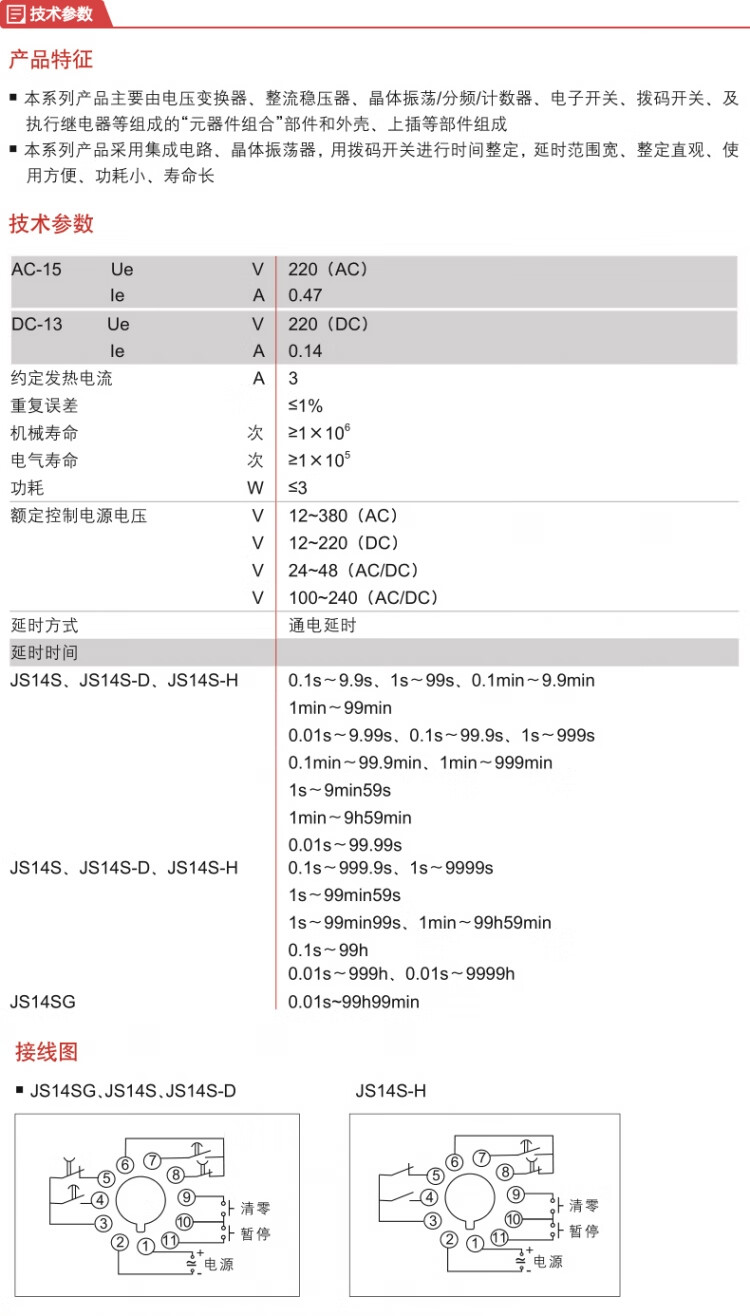 德力西电气 数显式时间继电器 JS14S 0.1秒-99小时 AC220V