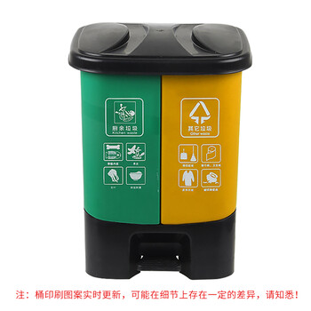 海斯迪克 HK-367 脚踏式塑料垃圾桶分类双格有盖 可回收+其他垃圾 苏州分类垃圾桶 40L绿蓝款