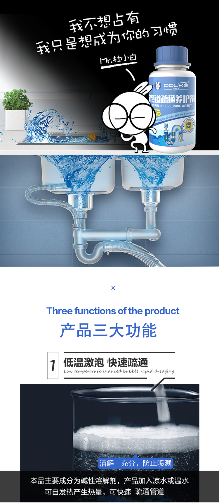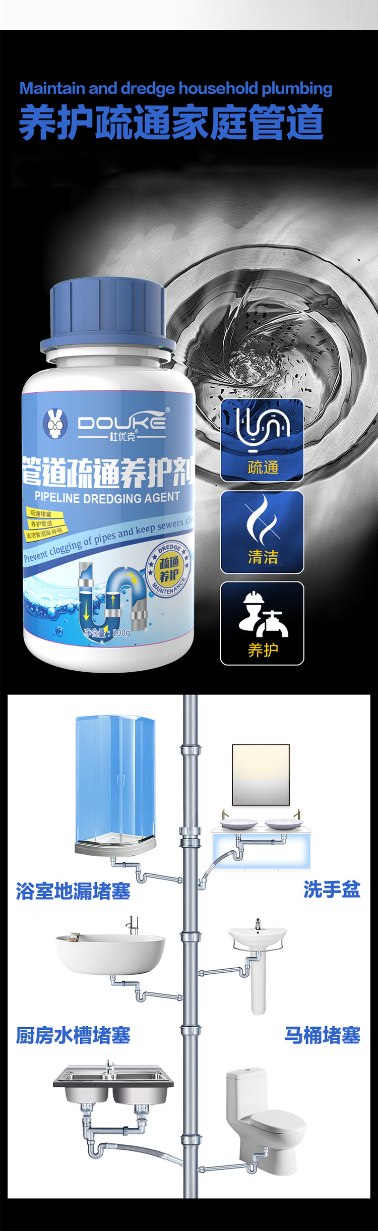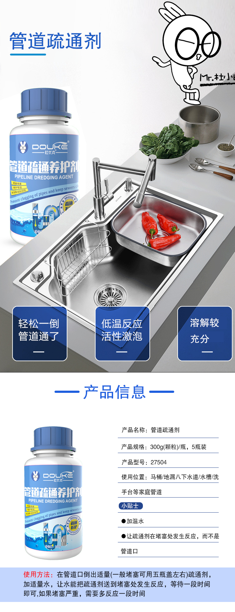 杜优克 下水道疏通剂 强力管道疏通剂 300g×5瓶 下水道疏通剂 马桶疏通剂 厕所疏通剂 地漏厕所马桶疏通27504