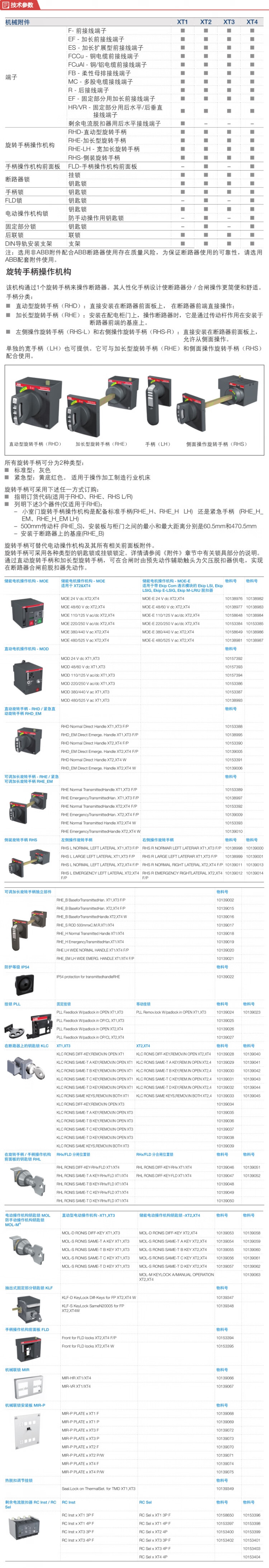 ABB 塑壳断路器附件 旋转手柄 RHE_H Normal Transmitted Handle XT1/XT4