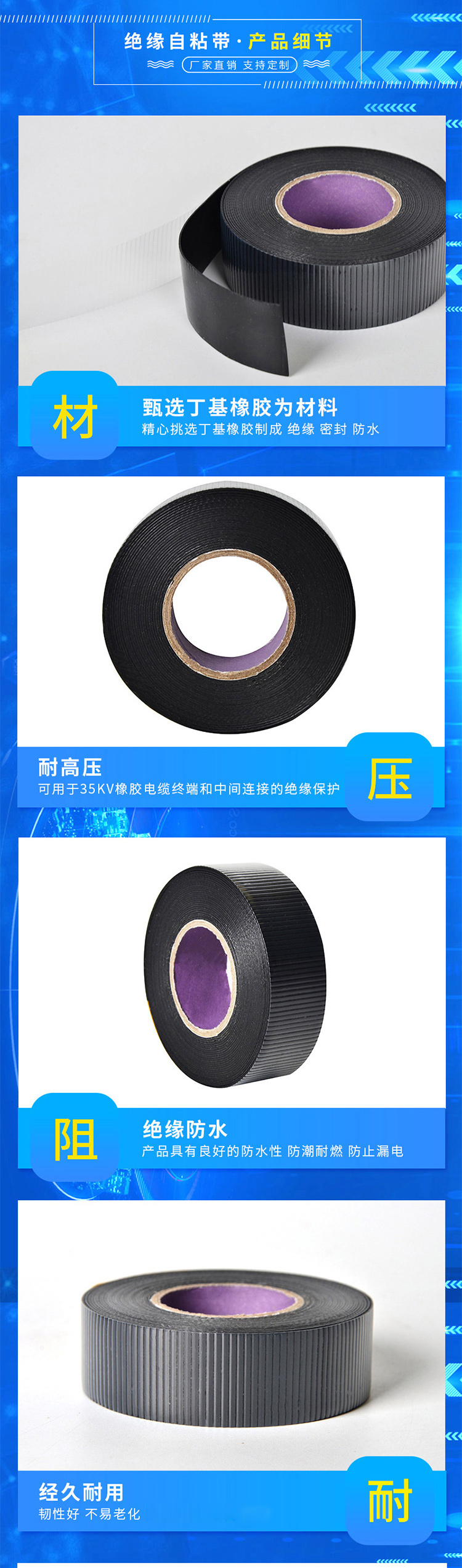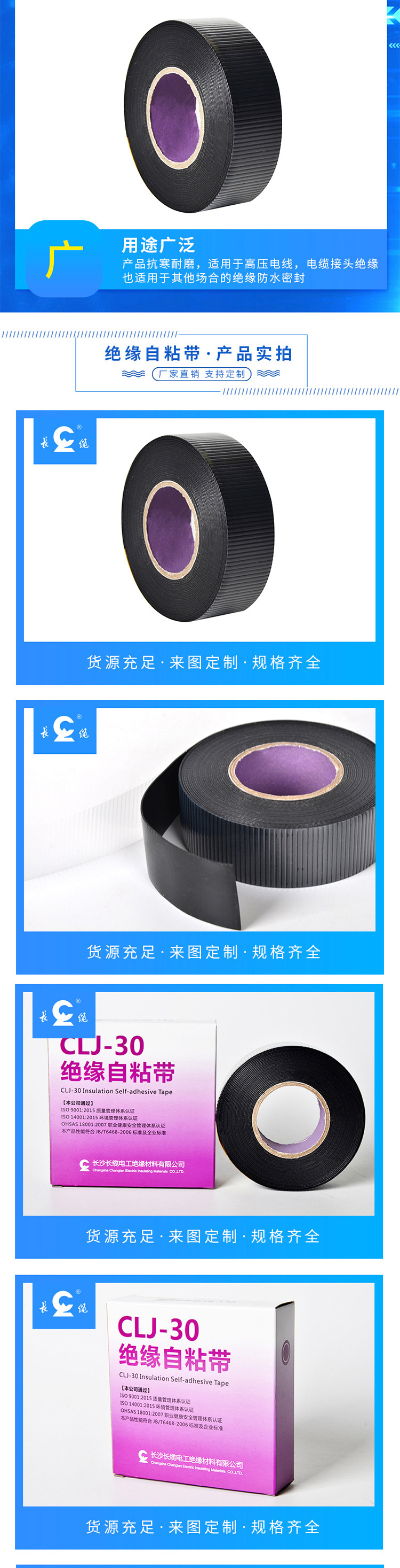 长缆CLJ-30绝缘自粘带35KV橡胶带防水绝缘密封带电工胶带胶布5米5m