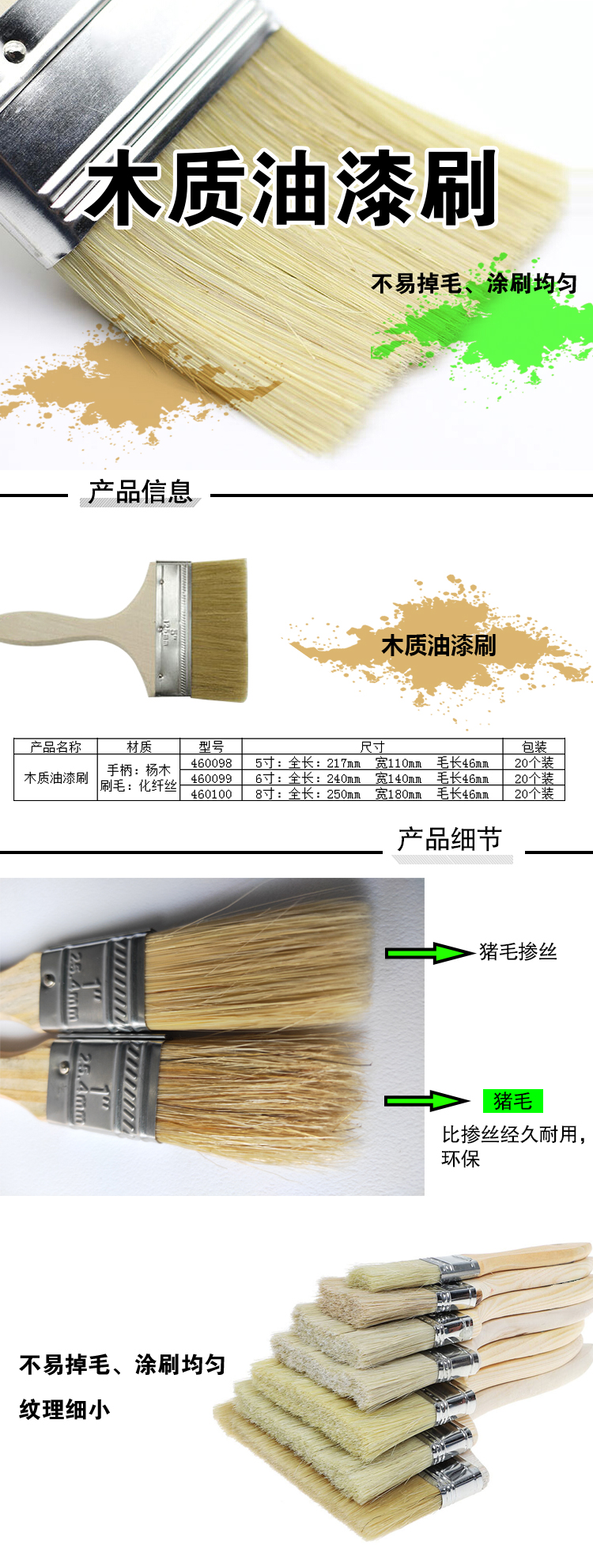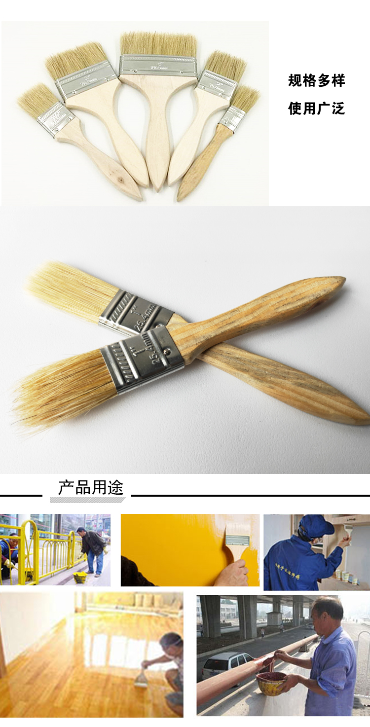 安赛瑞 木质油漆刷 毛刷 排笔刷 扫灰刷 油刷 8寸 毛长:46mm(20把装)460100