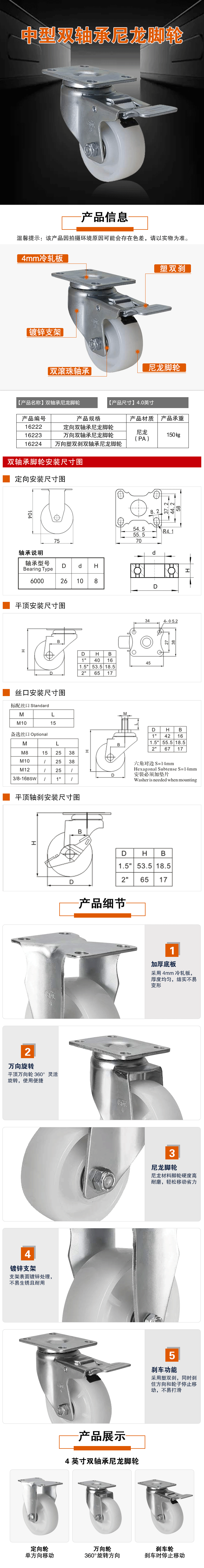 安赛瑞 平顶刹车脚轮 4英寸中型尼龙轮 家具工业轮 承重150KG 滑轮滚轮 铁双刹 易得力企业可定制 16224