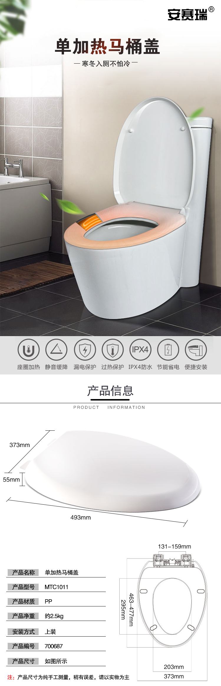 安赛瑞 智能加热马桶盖 座圈加热盖板 洁身器加热盖板加热马桶圈 白色 700687